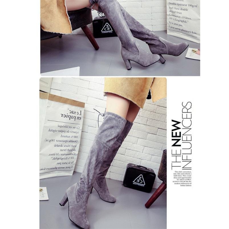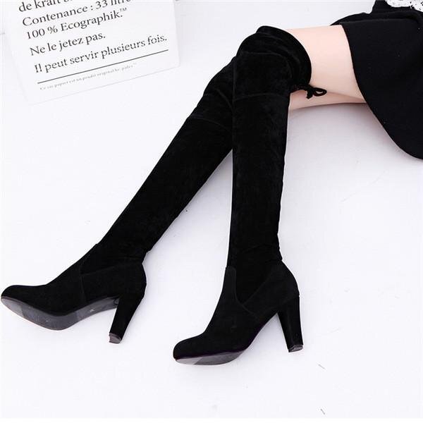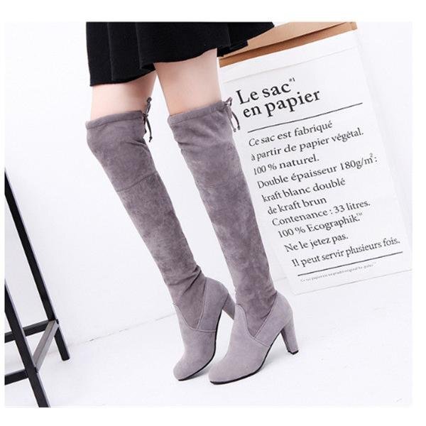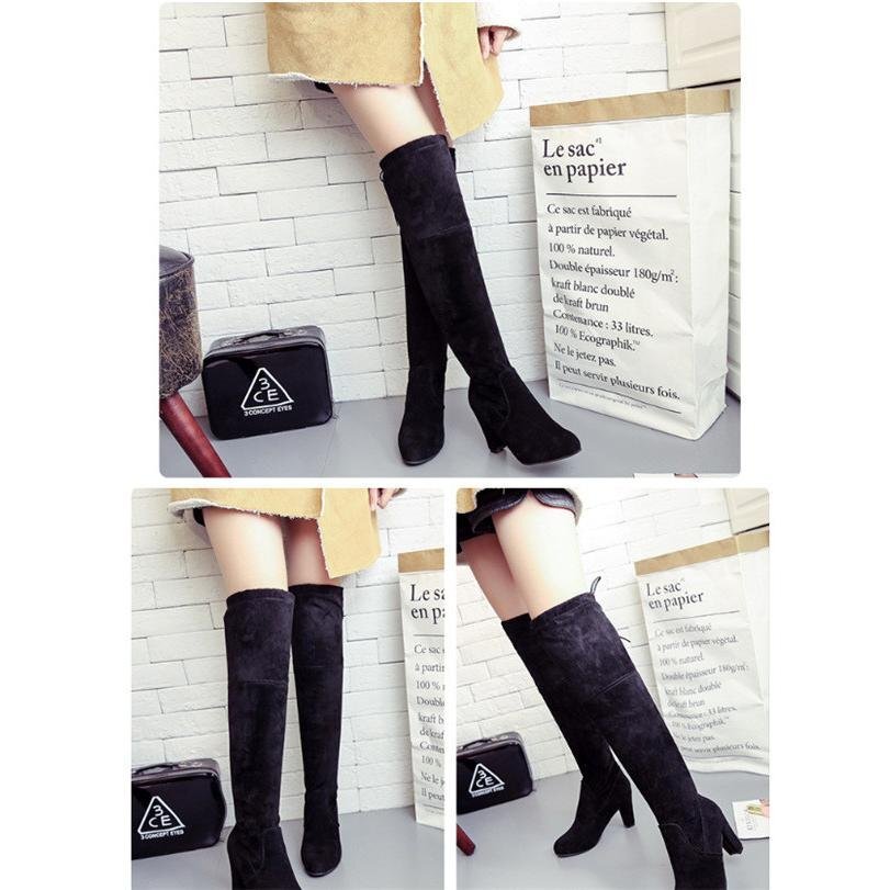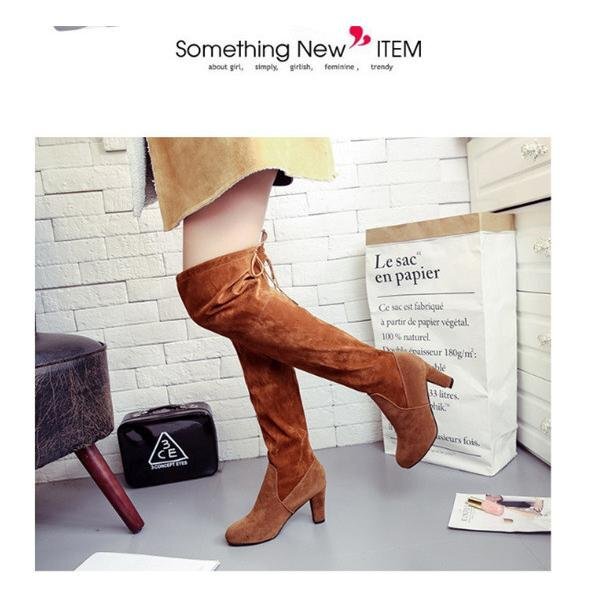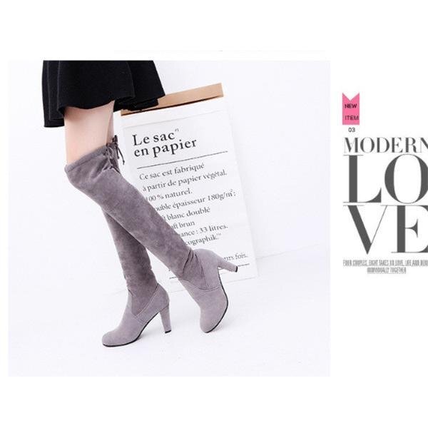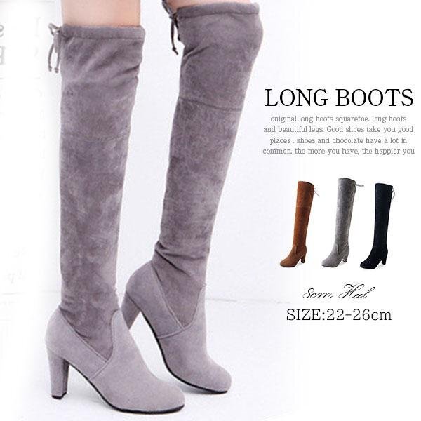【25.0cm】ブーツ ニーハイブーツ シンプル 秋冬 ヒール ハイヒール 太ヒール チャンキーヒール 美脚 大きいサイズ 歩きやすい 3色可選
