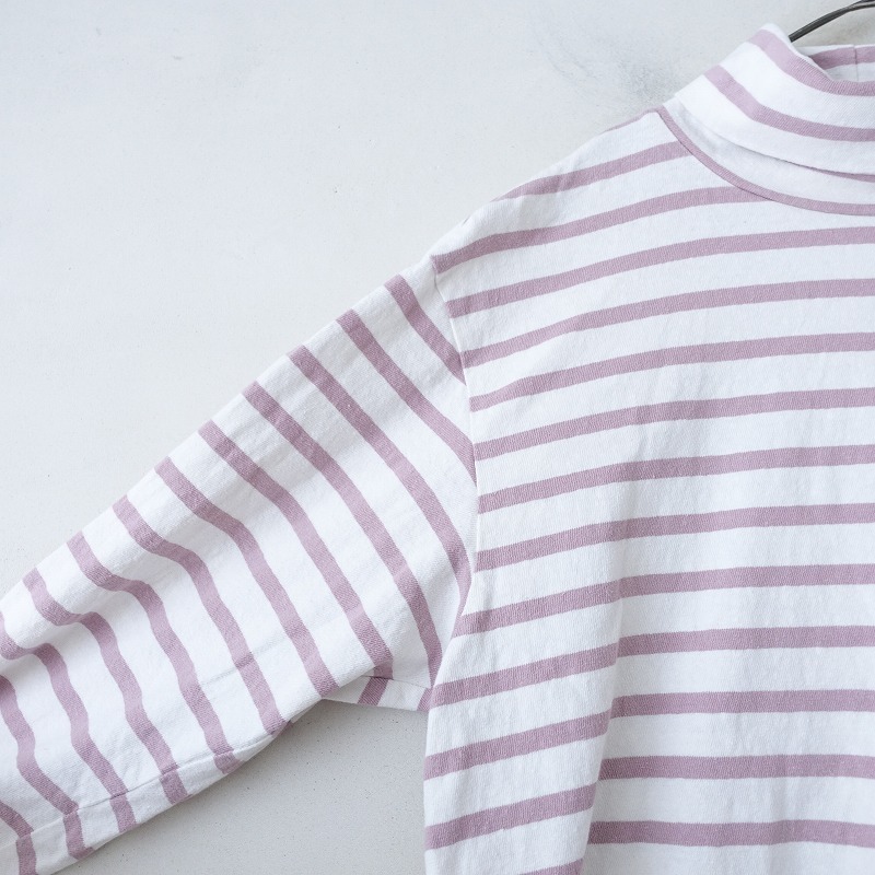 nest Robe UpcycleLinoのボーダータートルネックカットソーです。カラーはスモーキーピンク×ホワイトで、ボーダー織のしっかりとしたカットソー地で仕立てられております。定価(メーカー希望小売価格)18,700円 税込みの商品です。 |