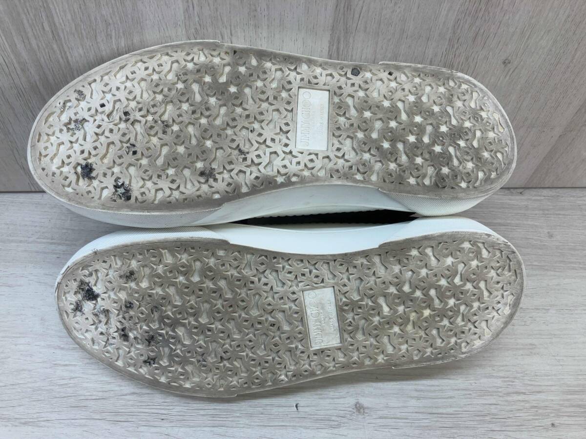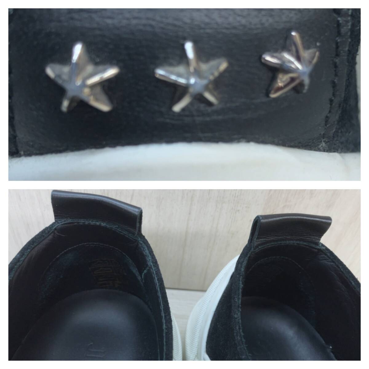 カカトの減り、アッパーにスレ汚れあり、全体的に使用感あり 全体的にうっすらと汚れがあります。スタッズ、スエード部分に擦れがあります。 |