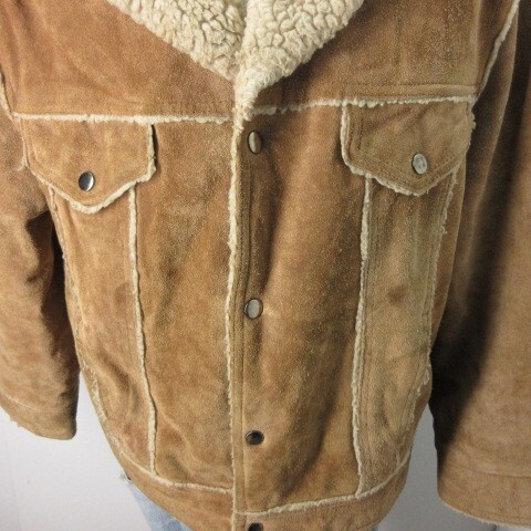 ★Goods アメリカ古着 70s-80s頃 スエード ジャケットシッカリした作りですガタイの良い方に オススメです★Size M (表記 44) 肩幅 48cm, 身幅 55cm ,着丈 63cm 袖丈57cm袖がそんなに長くないですので 170cmくらいの方にお勧めです★Condition 10/6汚れや解れはございますが、まだまだ着ていただけます★Material 100% 牛レザー★color 茶系★Made in KOREA
