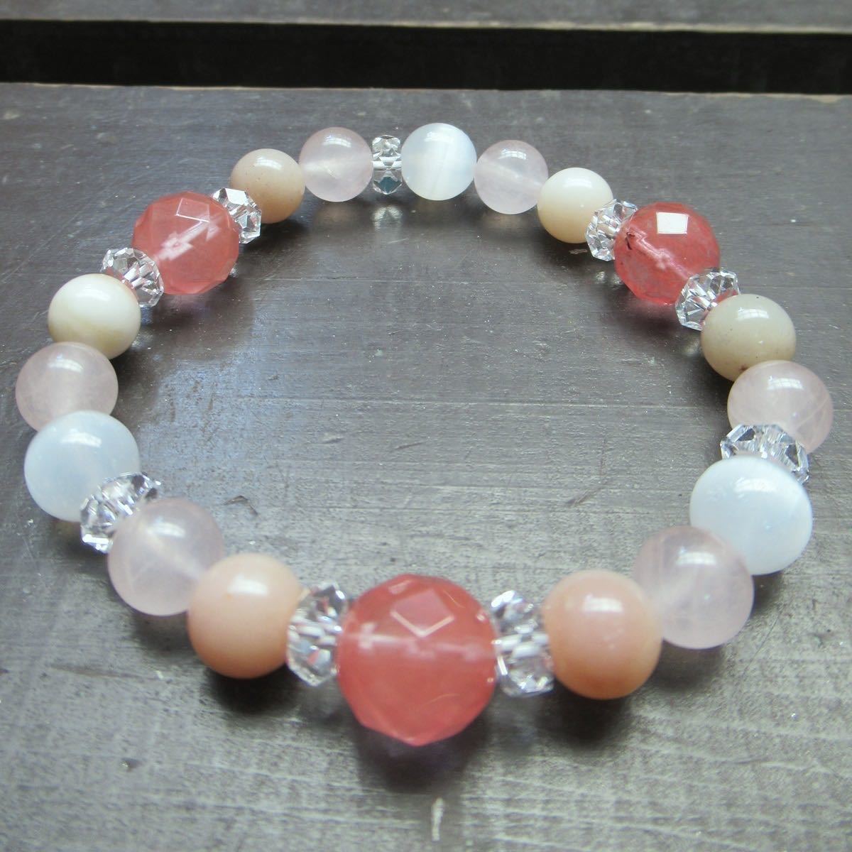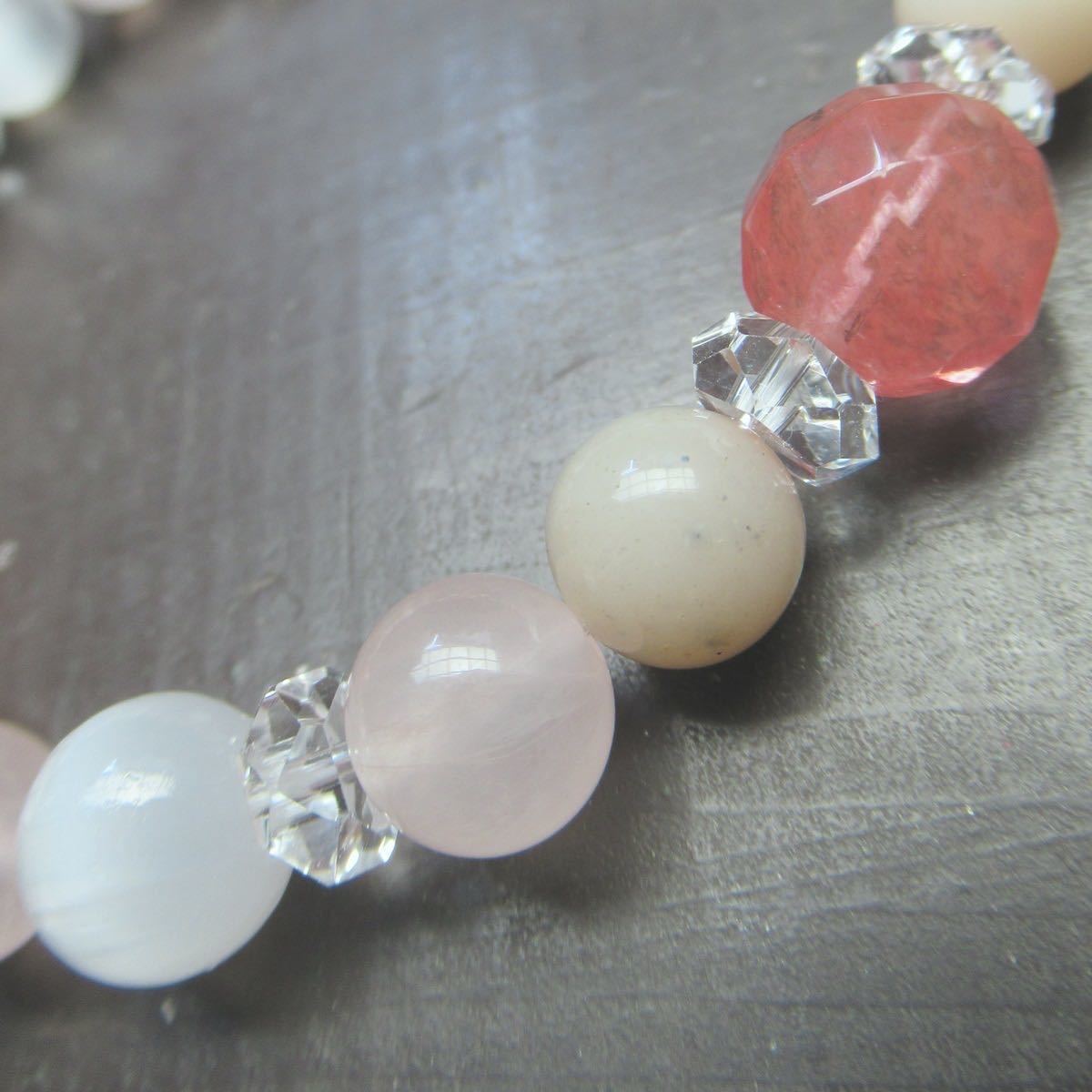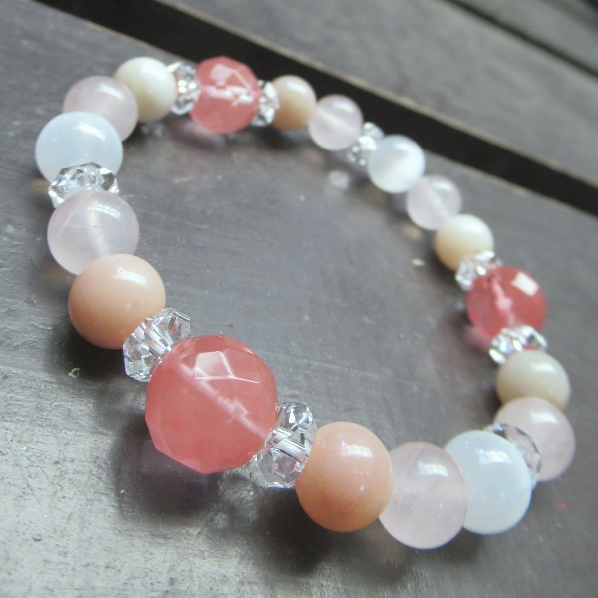 チェリークォーツxローズクォーツxピンクオパールブレスレット 天然石 パワーストーン