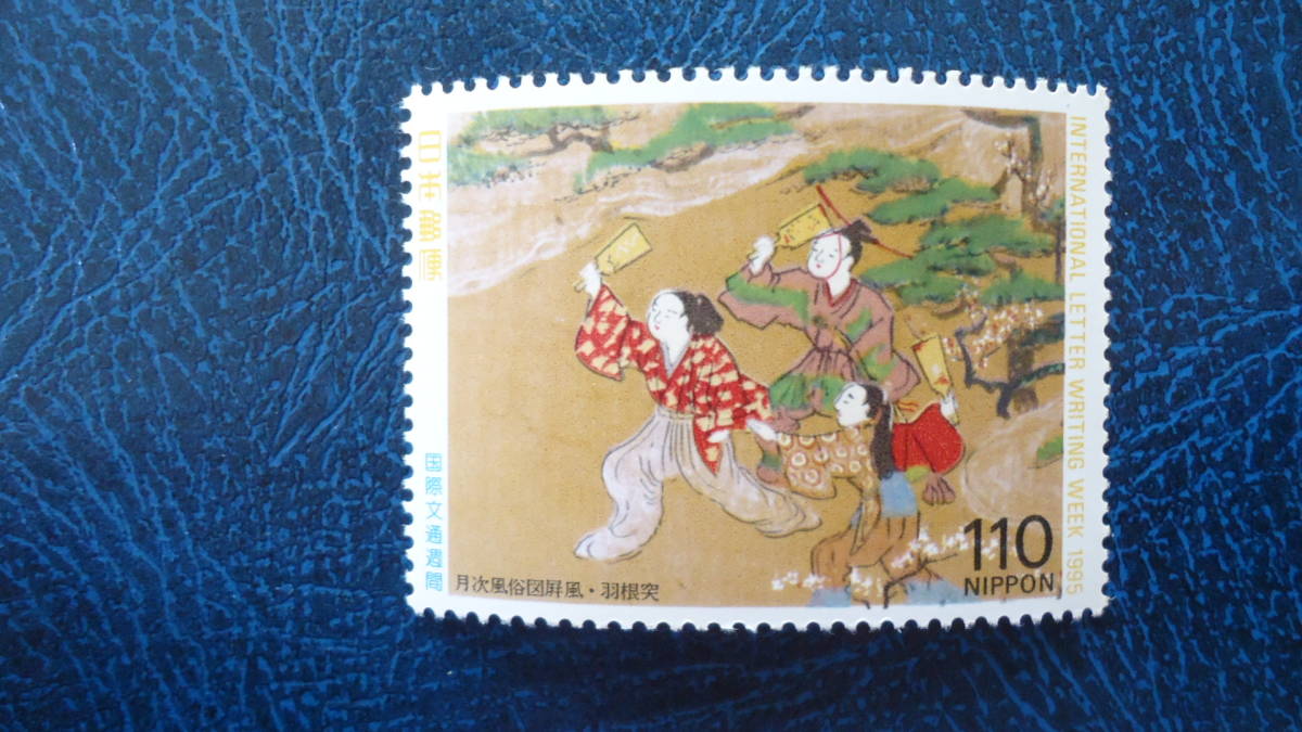 ◎文通週間1995年 羽根つき・月次風俗図屏風◎
