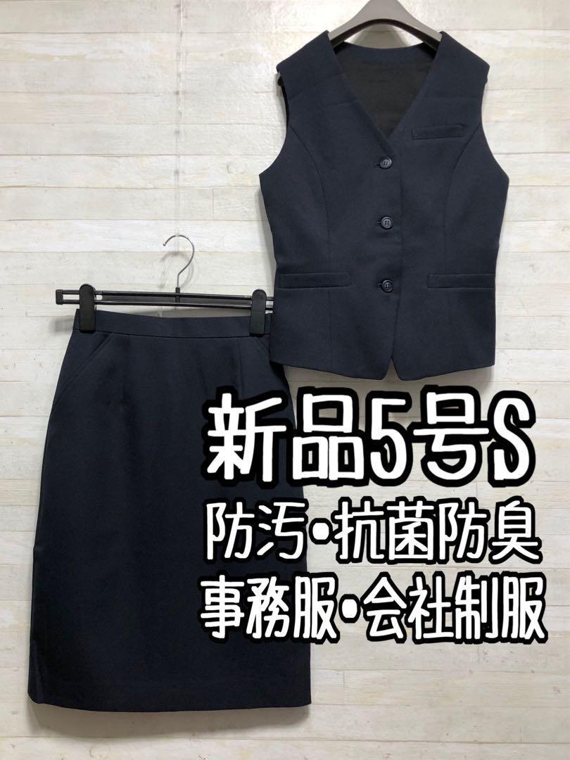 新品☆5号S♪紺系無地♪温度調節・裏地付ベストスーツ防汚加工・抗菌防臭〇D578