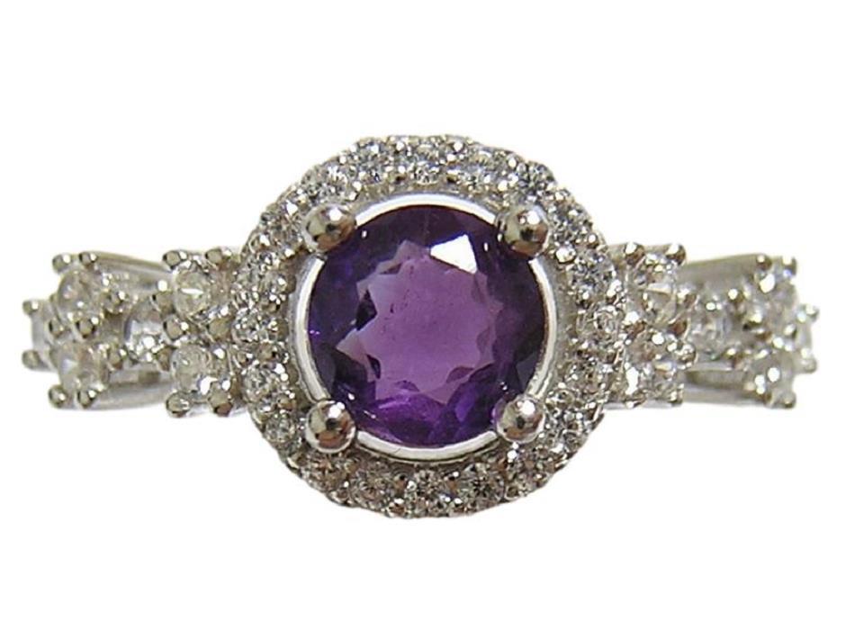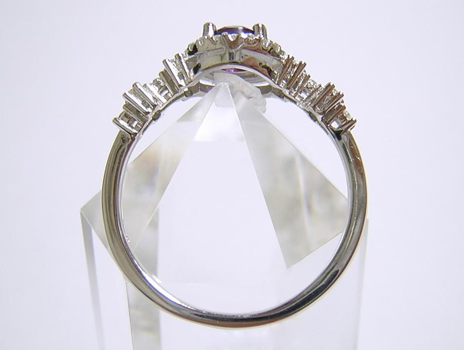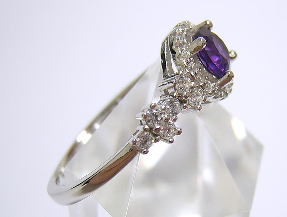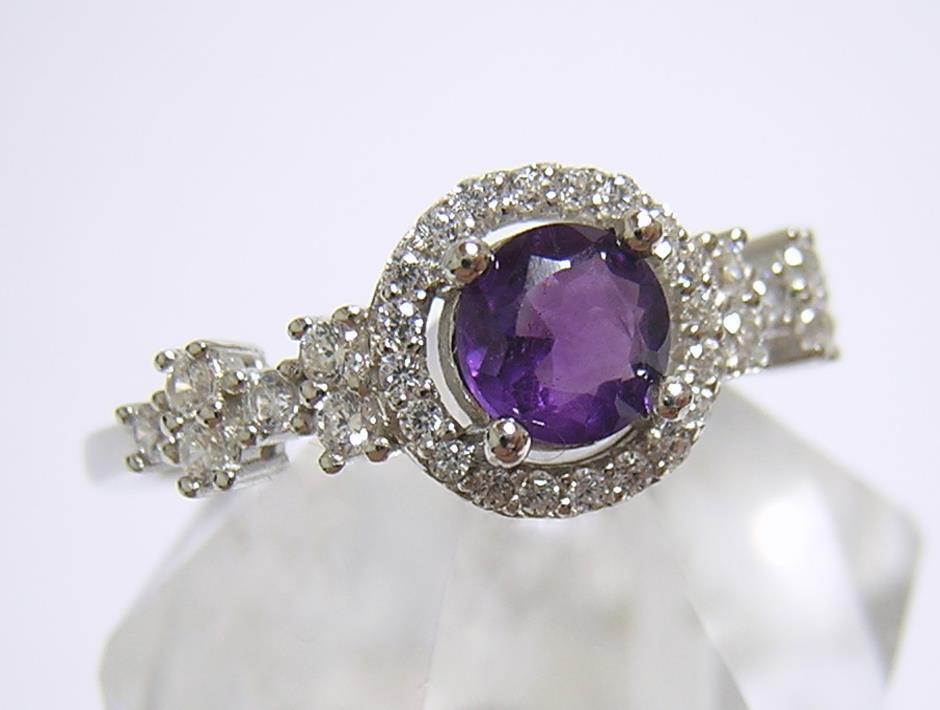 天然アメジストとキュービックジルコニアを使用したデザインリングです。 アメジストの大きさは約5mmです。 【中石】天然アメジスト 【産地】ウルグアイ産 【処理】非加熱 【カット】ラウンドファセットカット 【脇石】キュービックジルコニア 【重さ】2.2g 【サイズ】16号 (お直しは承れません) デザイン部:縦8mm×横20mm 【素材】シルバー925 (14金ホワイトゴールド仕上げ) 【刻印】925 【状態】新品 ※地金部分に製作時からの微細な小傷やスレがあります。 |