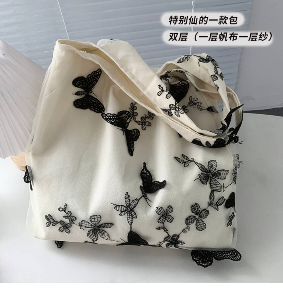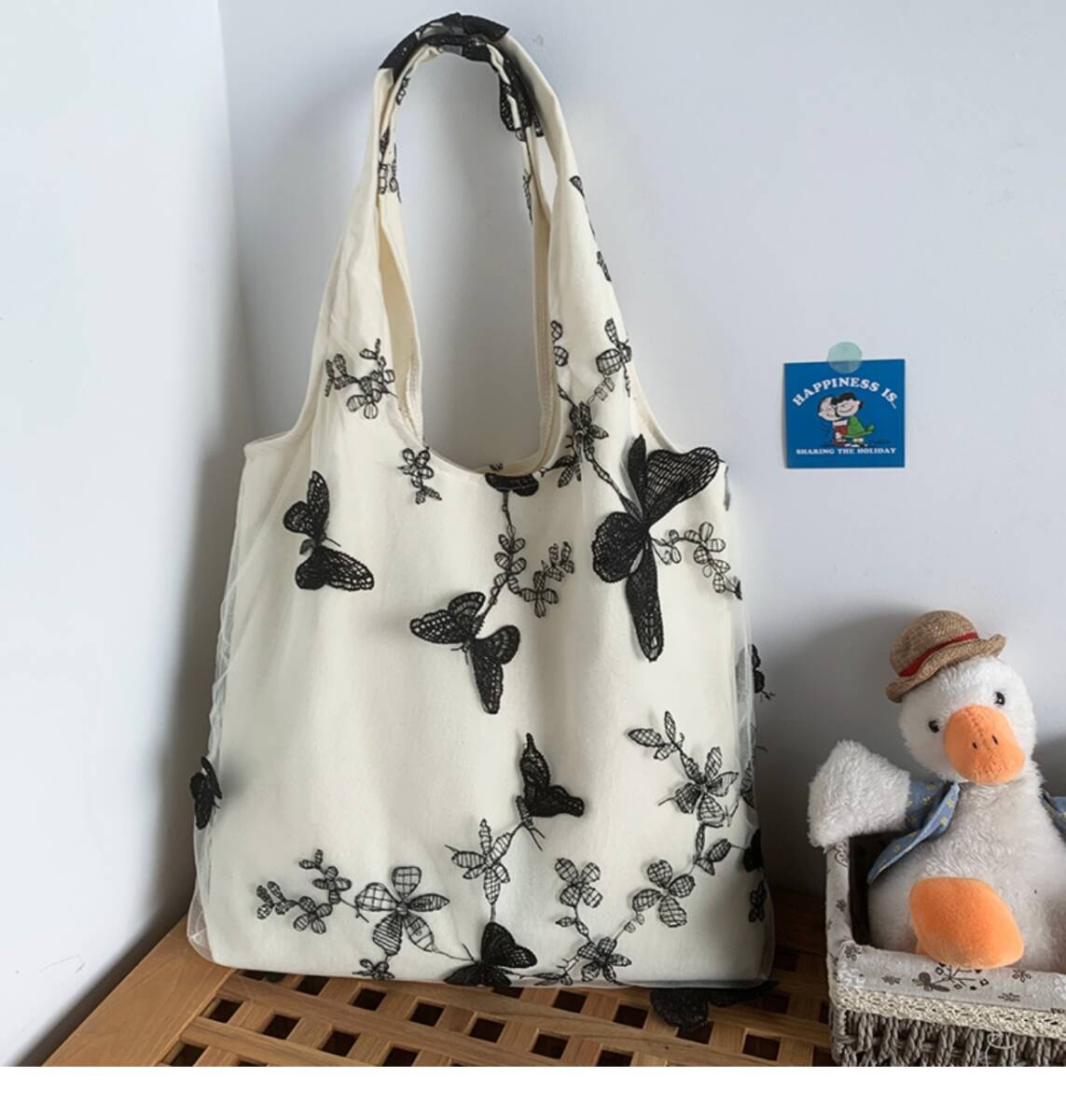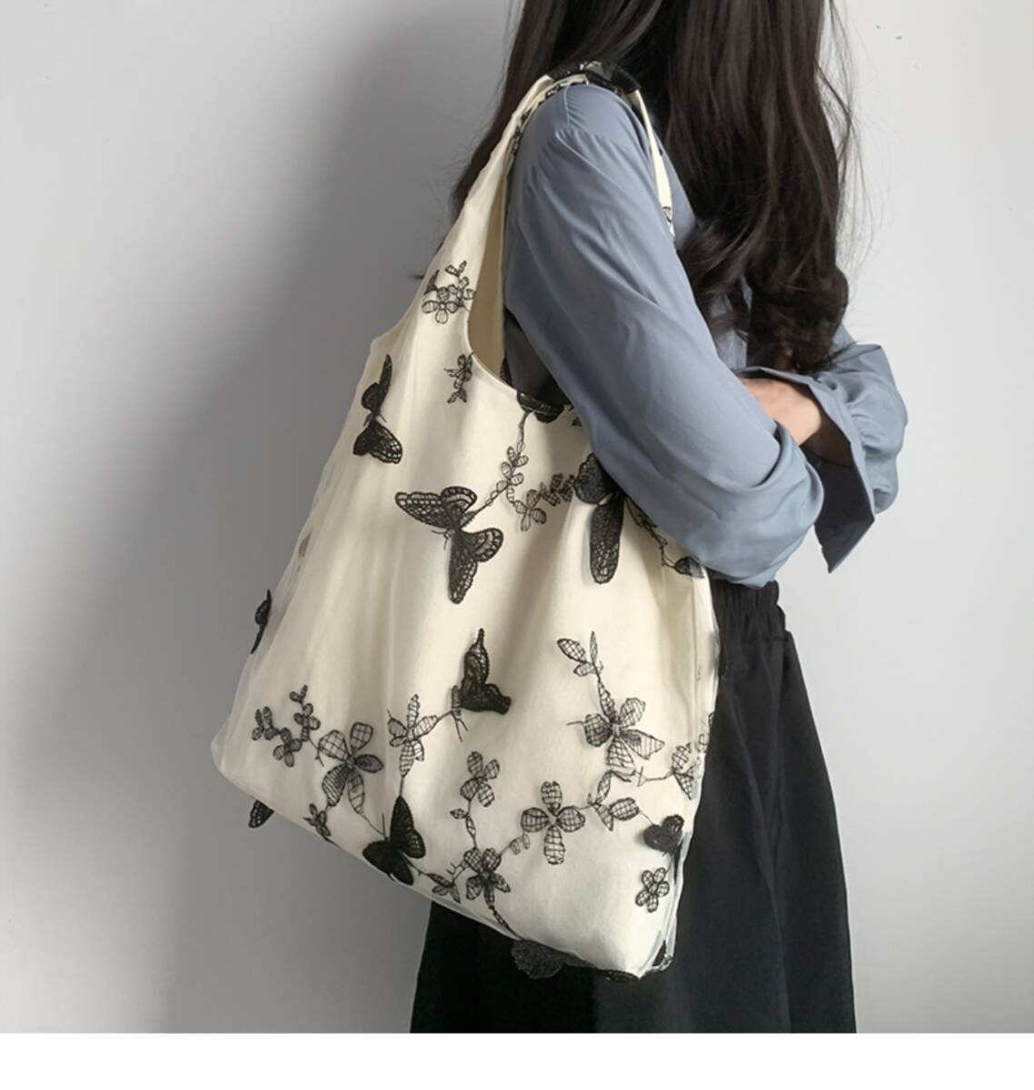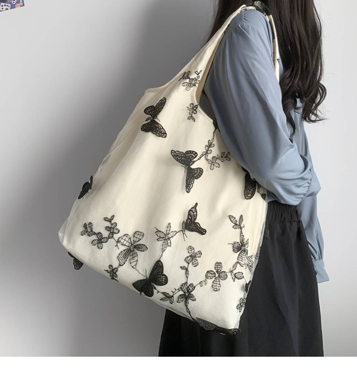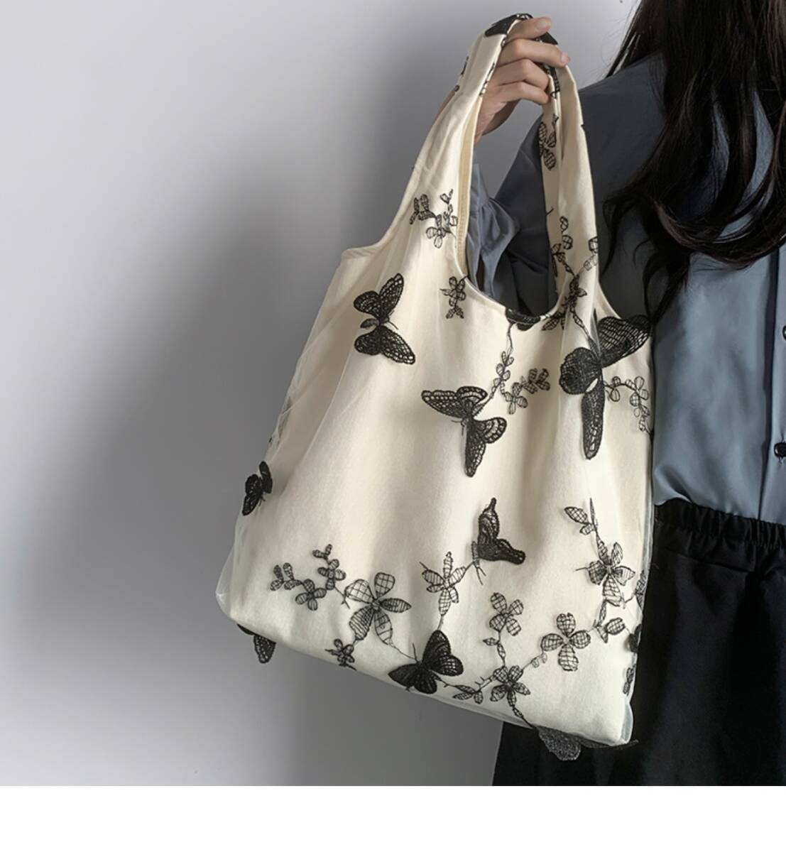 【新品!未使用!】トートバッグ 蝶 ホワイト 韓国風 エコバッグ 春