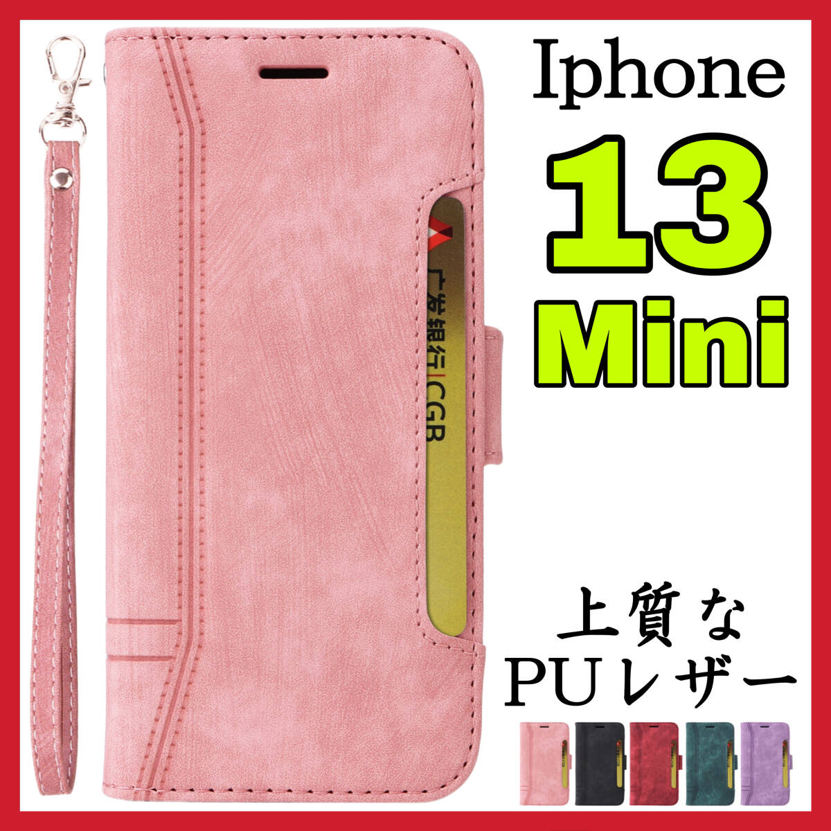 Iphone13miniケース 手帳型 ピンク 高級感 上質PUレザー アイホン13ミニカバー ピンク スピード発送 耐衝撃 お洒落 カード収納 男女兼用 手帳型ケース スタンド機能 マグネット 軽量TPU 収納力 横置き機能 レンズ保護 落下防止 人気