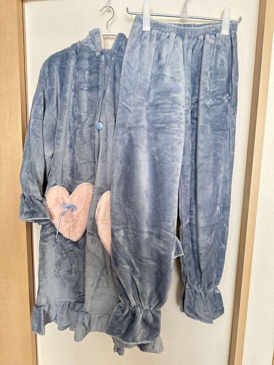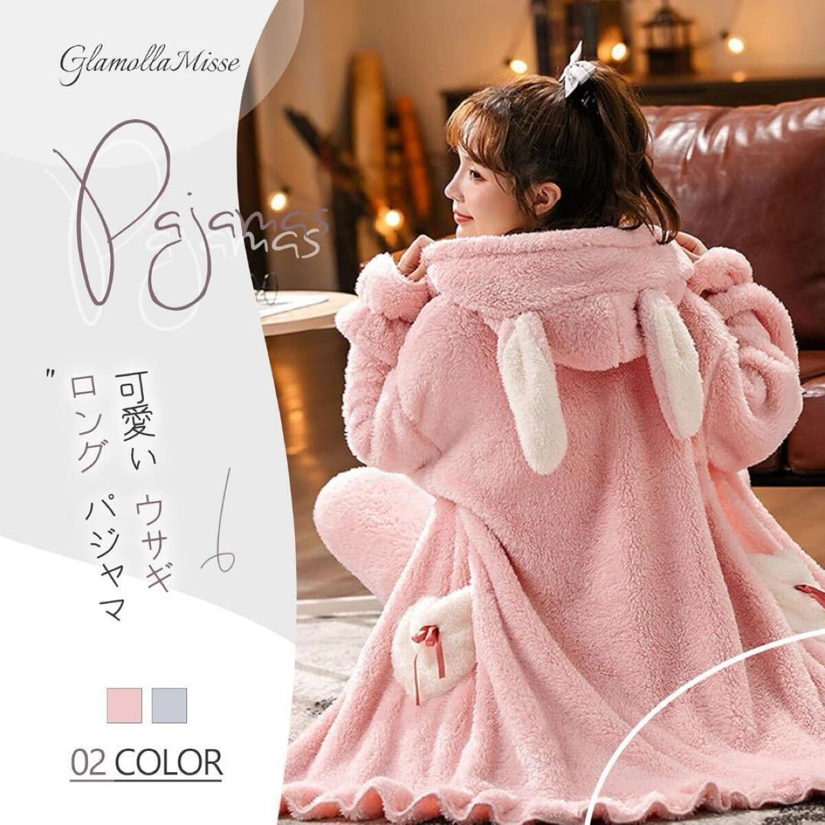 ロング丈、可愛いウサギ耳、フランネル生地が特徴です。
