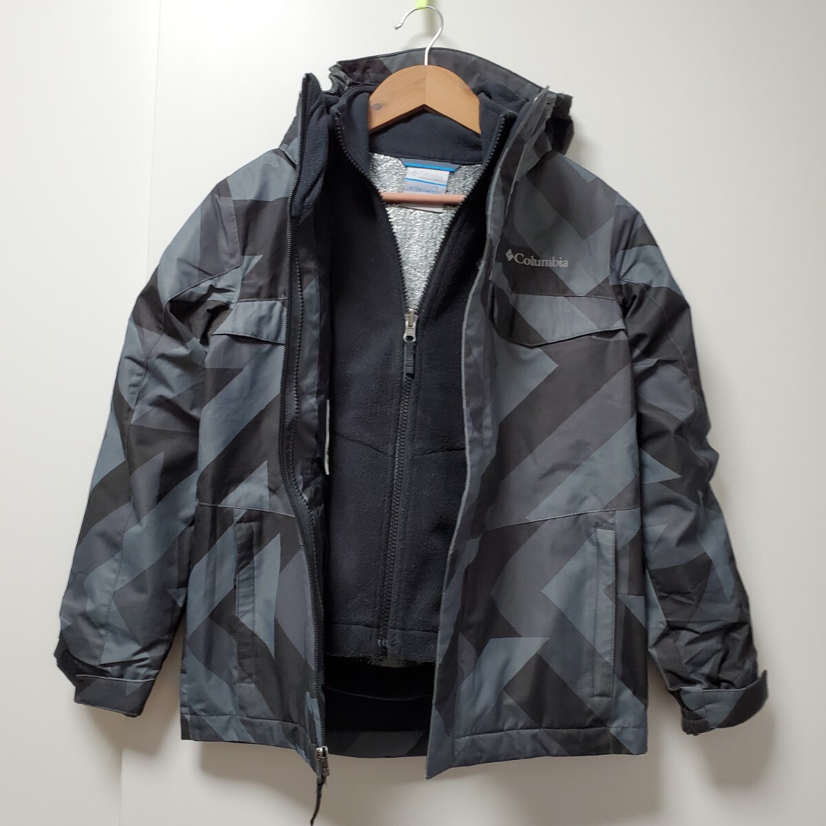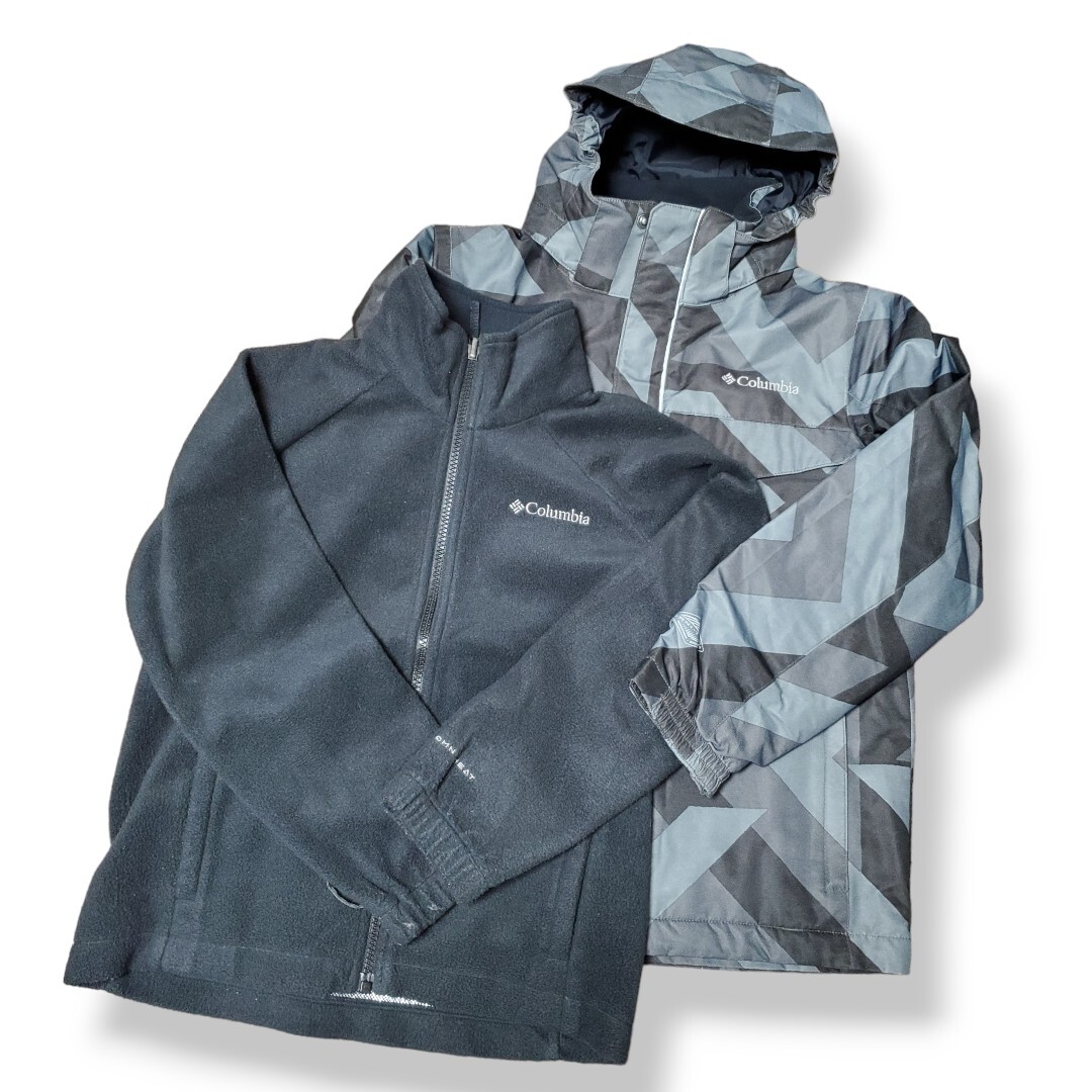 Columbia マウンテンパーカーフリースセット オムニテック 防水 防寒 キッズ 子供用 2way ジャケット アウトドア ブラック