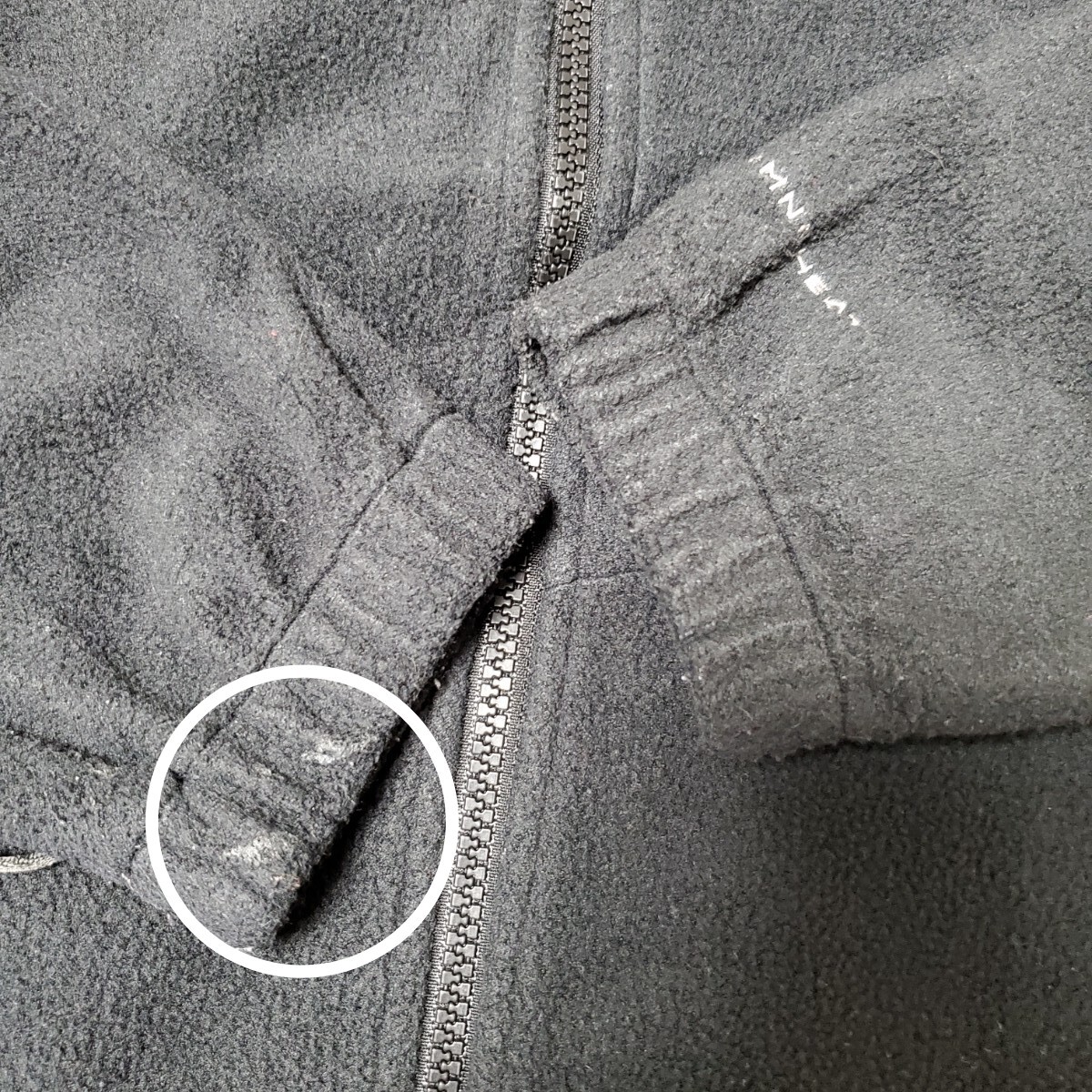 フリース袖口に接着剤の付いた跡がありますが、着用に問題ございません。画像11でご確認下さい。