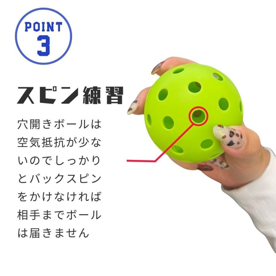 ボールサイズは硬式野球ボール、軟式M号球とほぼ同じ大きさなのでボールを使った各種スポーツ(野球、ソフトボール、ピックルボールなど)の投球、ピッチングなどの練習に最適です
