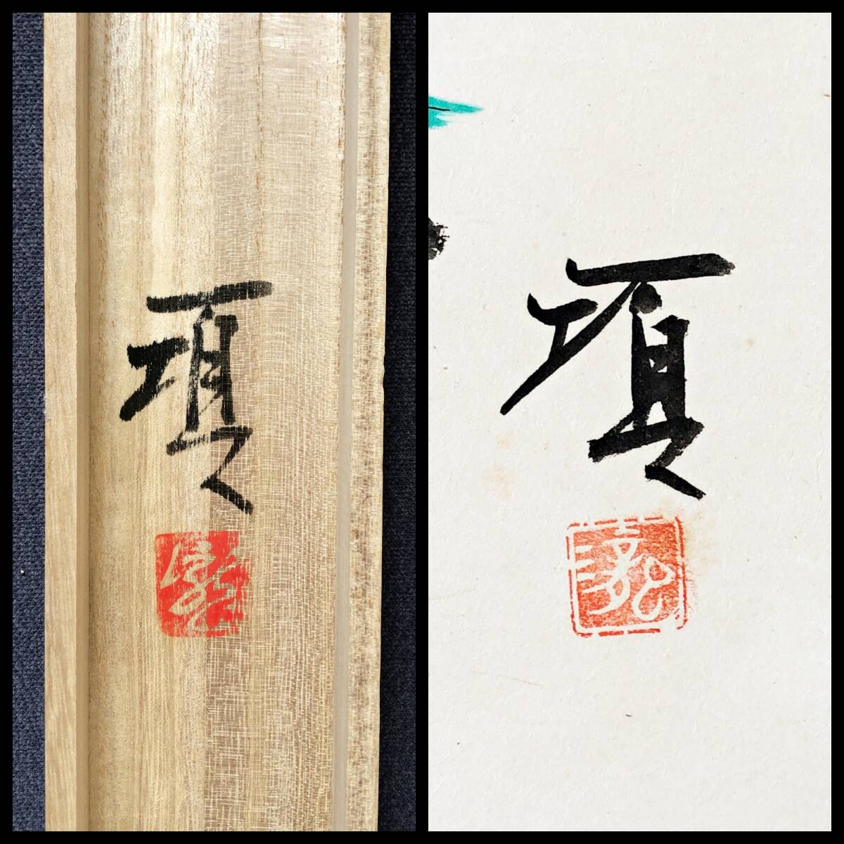 全体サイズ(軸先含む) : 138.5×73(cm) 本紙サイズ : 45.5×57(cm) 若干の誤差はご了承下さい。 本紙:数ヶ所に目立つシミがあります。 表具:目立たないが脱色したようなシミが全体にあります。 箱:共箱あり。 その他、詳細は画像をよくご確認ください。 画像で表現しにくい薄い汚れやシミは予めご了承下さい。 画像は現物を撮影しておりますが、照度、遮光、モニターによっては実物と色目が異なって見えることがありますので、ご注意下さい。 |