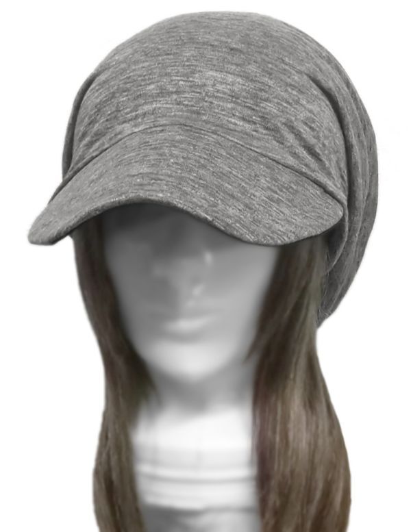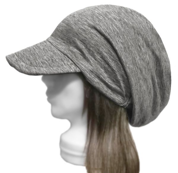 ハンドメイド◆つば広ルーズキャスケット◆リネンスラブニット/杢グレーmix ◇紫外線対策・ゆったりサイズ・小顔効果・オールシーズン◇