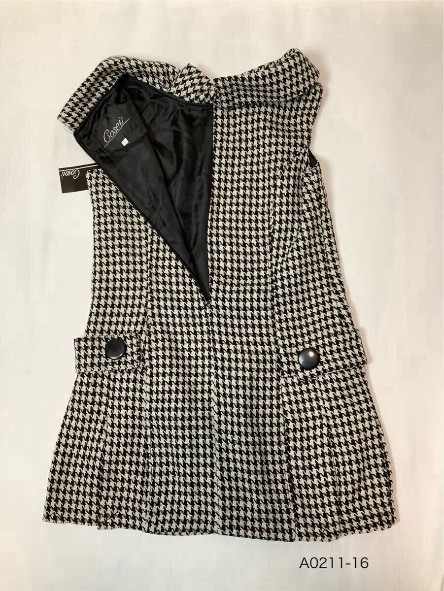 ・ノースリーブ ハウンドトゥース柄 オフタートル ジャンパースカート・ミニ ワンピースの出品になります。