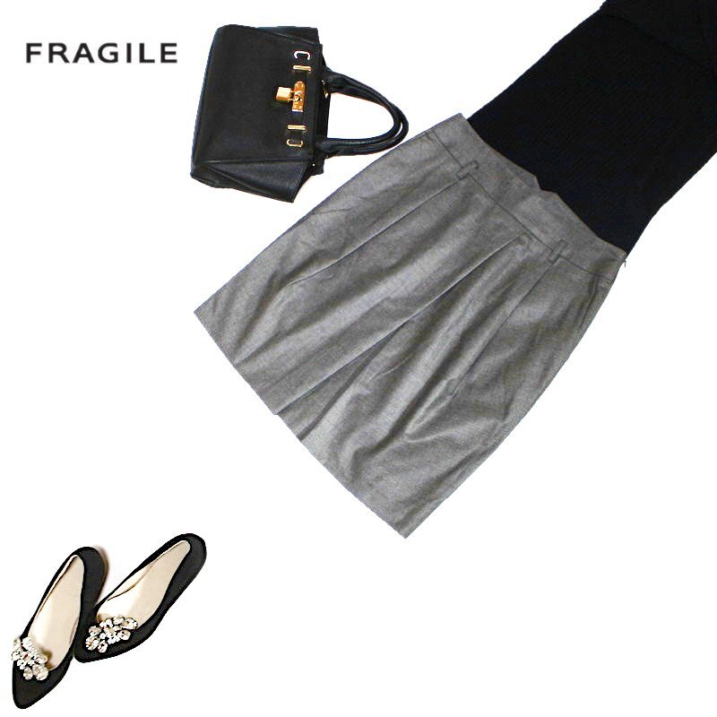 美品 フラジール FRAGILE 株) 三陽商会 合物 ウール混合 シンプル スーツ タック ギャザー タイトスカート 36 7号 グレー 通勤 ビジネス