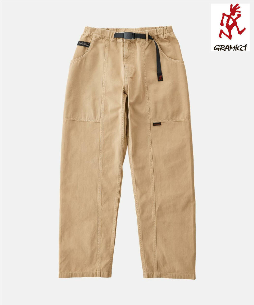 G105-OGT GADGET PANT 【メンズ】 ブランドのルーツであるクライミングシーンにおける機能性を残しつつ、現代のライフスタイルに合わせたガジェットパンツは、 多彩なガジェット類を格納できる両サイドの大型ポケットや、山にも街にもアジャストしてくれる適度にゆとり のあるシルエットが特徴です。 身生地にはハリコシがあり、耐久性に優れるオーガニックコットンツイルを、負荷がかか りやすいポケット部にはタフなキャンバス地を採用し、 製品染めを施すことによって、2種素材の コントラストをアクセントにしています。 【Gramicci/グラミチ】 1970年代、USAで”ストーンマスター”と呼ばれヨセミテロッククライミングをリードしてきたある一人のロッククライマー。 彼は当時のクライミングウェアでは満足できず、独自の手法で機能性に富んだウェア作りに着手し、1982年にはカリフォルニアの小さな倉庫で”GRAMICCI”を立ち上げた。 180度自然な開脚を可能にしたガゼットクロッチと、片手で簡単に調節できるWebbingベルト、そしてゆったりとしたシルエットが特徴のグラミチパンツ・グラミチショーツ。 このGRAMICCIを代表するパンツはクライミングパンツの代名詞的存在としてたちまち全米に広がり、日本でも受け入れられています。 親しみやすいランニングマンロゴはカジュアルウェアとしても認知され、現在ではタウンユースとしても不動の地位を得ている。 現在GRAMICCIはLA郊外の自然に囲まれたAgoura Hillsに本社を構え、NYで経験を積んだ有能な企画チームを中心に新しい商品開発に取り組んでいる。 |