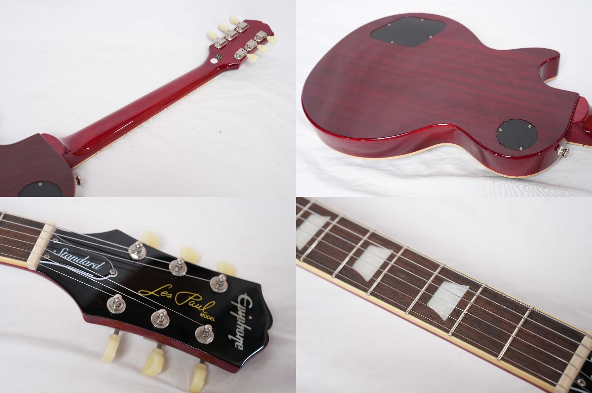 50年代レスポールスタンダードを基に設計された現行品モデルEpiphone by Gibson 50’s Les Paul Standard Vintage Sunburst 2021年製です。ヘッドシェイプもリニューアルされ、より造りや品質もブラッシュアップされた人気モデルです。 電子パーツもUSA製と同じポッドが採用されるなど細部まで品質が高くなっています。音もレスポールならではの重厚感のあるサウンドで解像度も高く多様なジャンルに対応できる1本です。 ■■■以下わかる範囲でのスペックです。■■■ ボディ材 : Flamed Maple Laminate Top +Mahogany ネック: Mahogany 指板 : Indian Laurel ピックアップ : Epiphone ProBucker-2+Epiphone ProBucker-3 重量 :約4.2kg ナット幅 : 約42.7mm シリアルナンバー : 21041530××× カラー : VS フレットは主観ですが約8~9部山程度残量があります。 ■商品の状態■ *小傷、擦れ程度で使用感の少ない美品です。 *ケースが欠品しています。 *ネックはほぼフラットで反りは感じられません。 *動作確認済みです。 ■付属品■ なし | ||