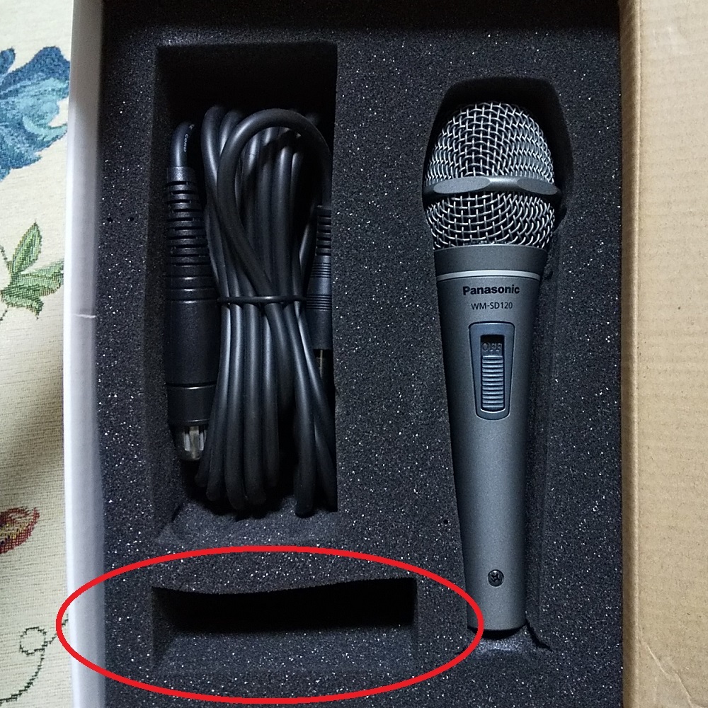 写真印の部分に入っていたマイクホルダーと変換ねじ、取扱説明書が欠品しています。