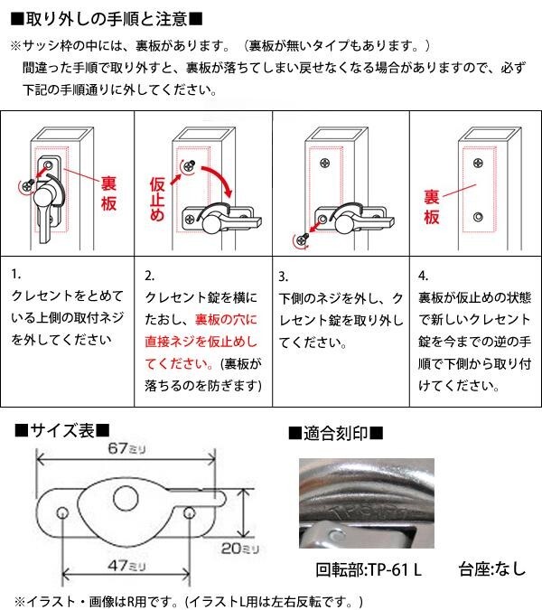 | 仕様 | 手前右窓取付け用 ●適合刻印 回転部:TP-61 L 台座:なし |