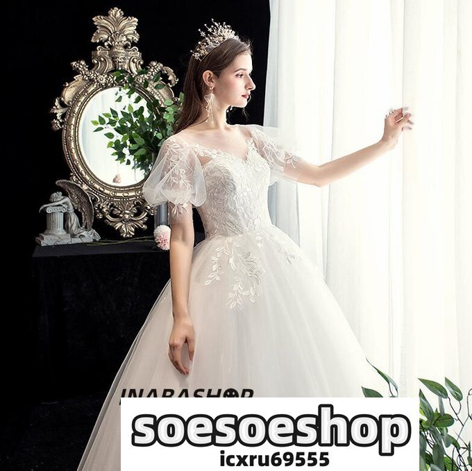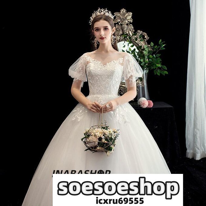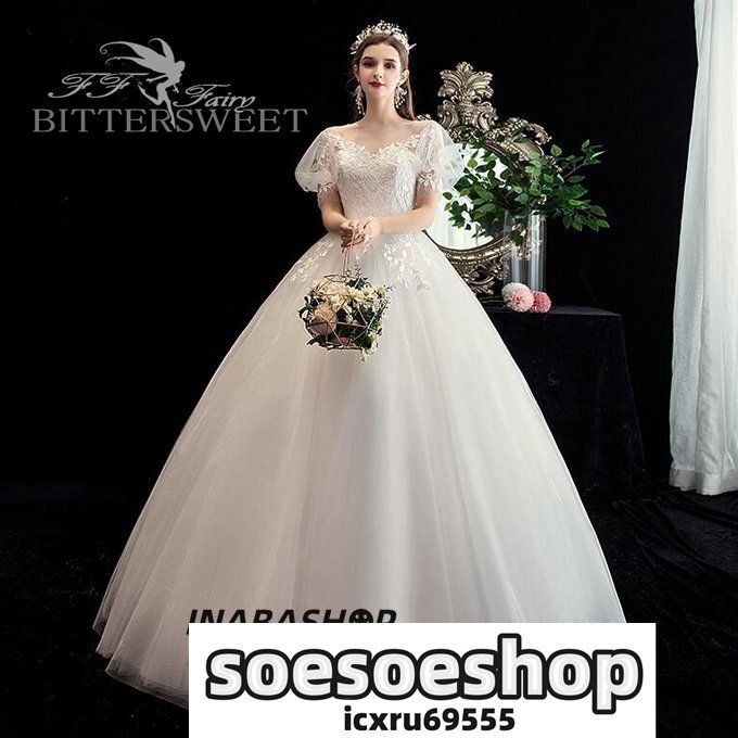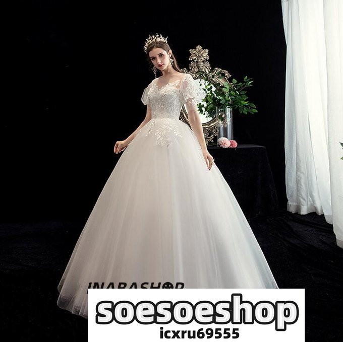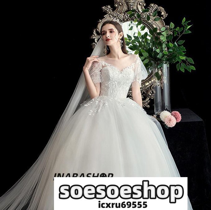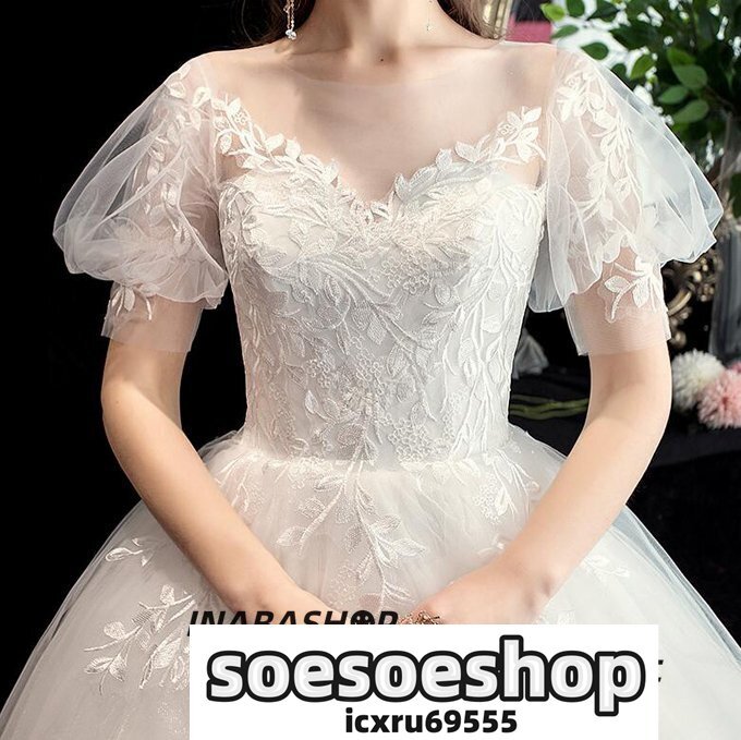 ウェディングドレス ウエディングドレス 袖あり 床付きタイプ Aライン ロング 前撮り 後撮り 披露宴 結婚式 演奏会 発表会 海外挙式ドレス