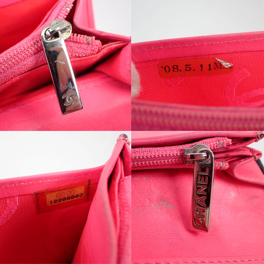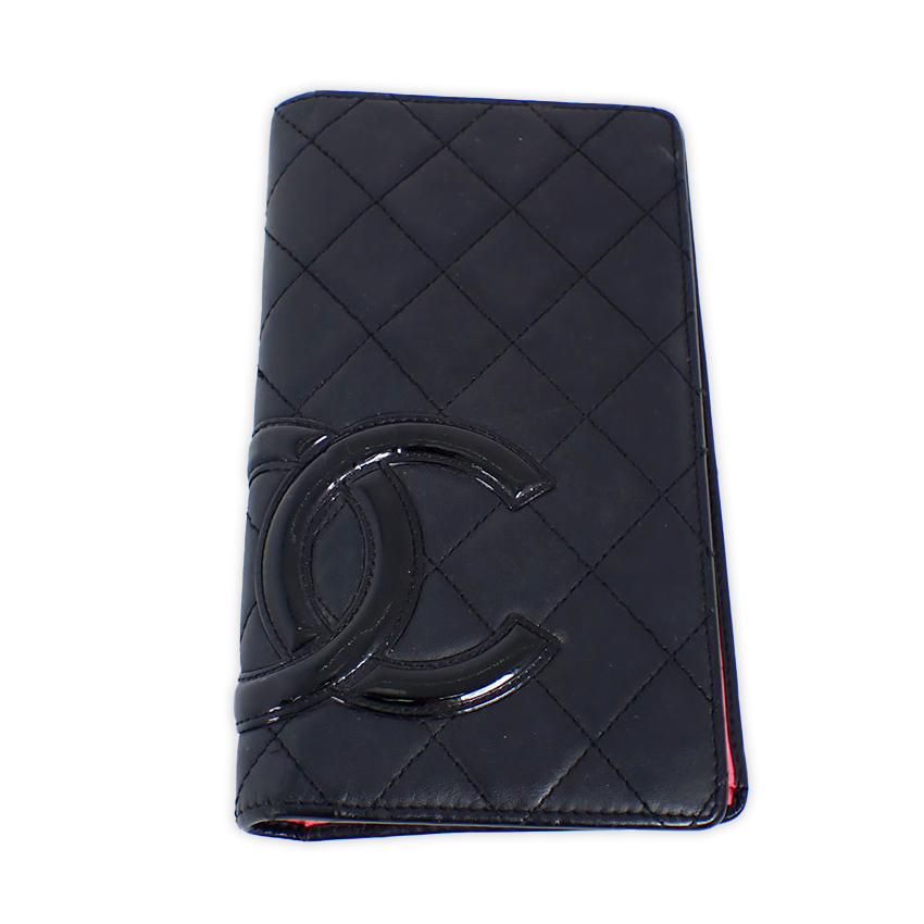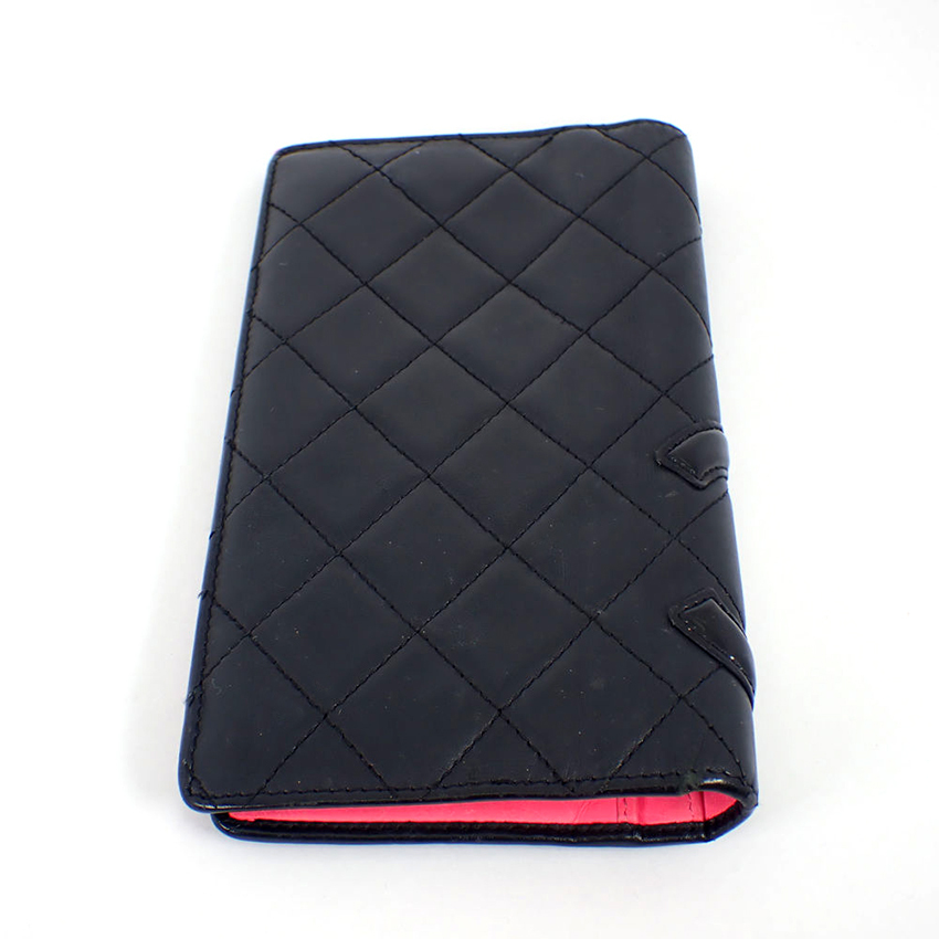 【中古】CHANEL/シャネル カンボンライン ブラックxピンク 長財布/b49-22
