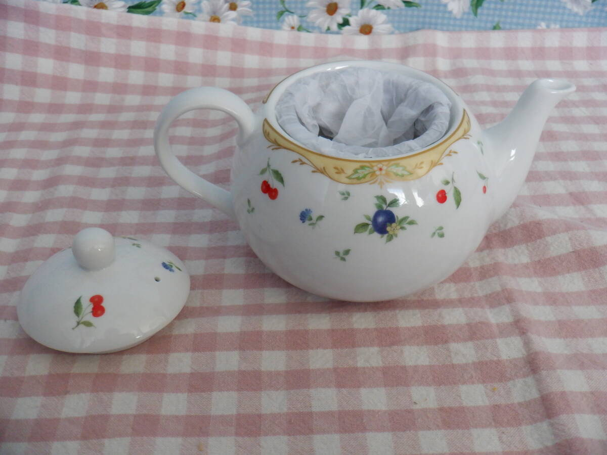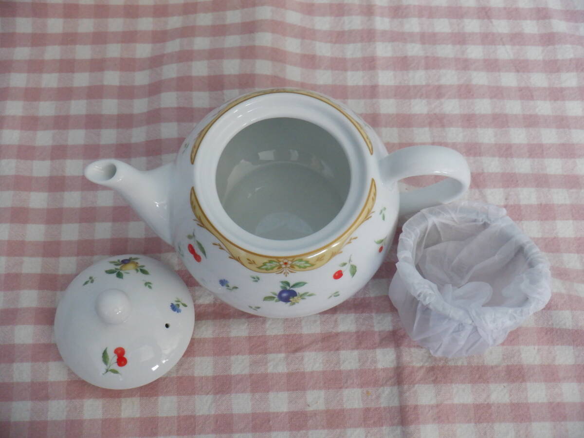 NARUMI『ナルミ★かわいい果物柄のティーポット』~箱なしになります。ティーポットのサイズが、縦12cm、横幅(最大)、高さ11cmになります。採寸の方ですが、多少の誤差はお許し下さい。自宅保管につき、ノークレームノーリターンでお願いいたします。新規の方・評価の悪い方は、こちらの判断で取り消しさせていただく場合があります。