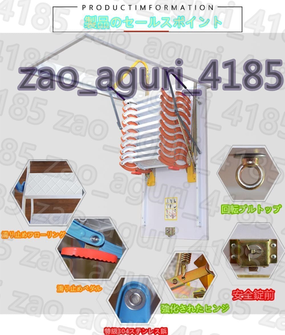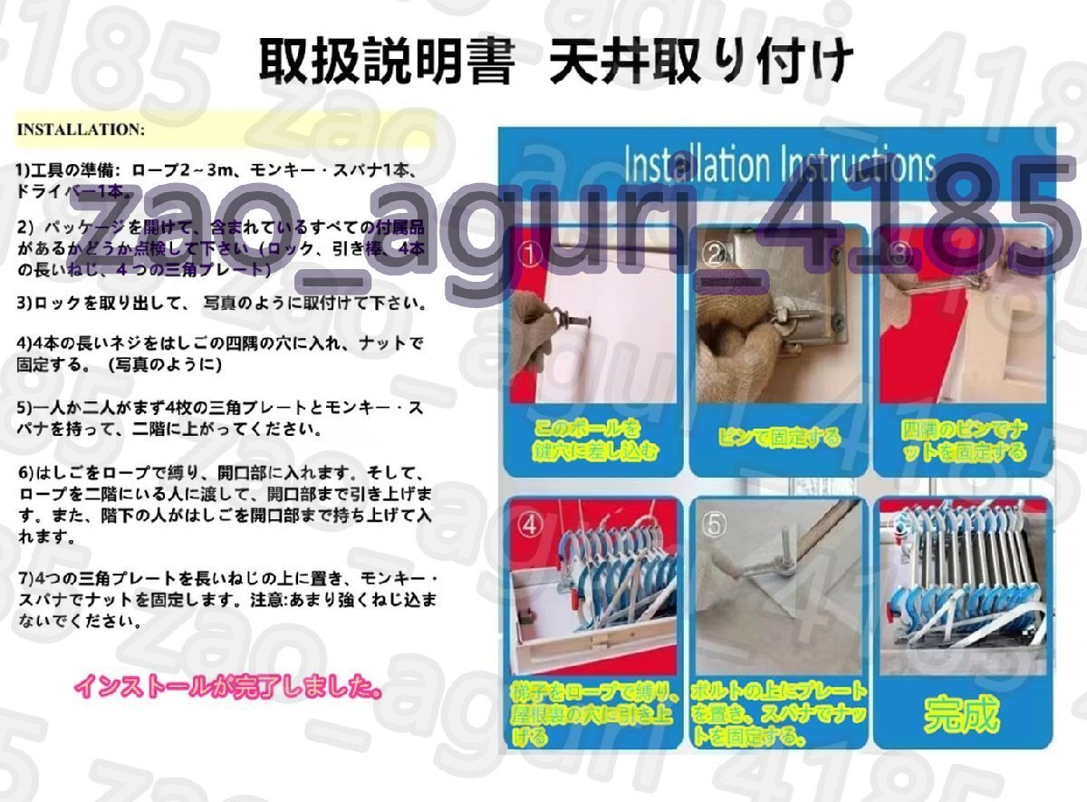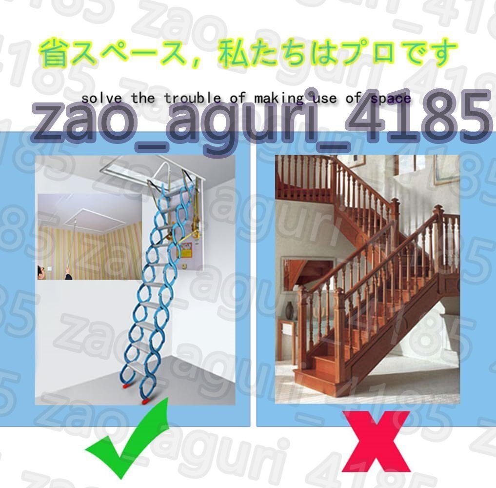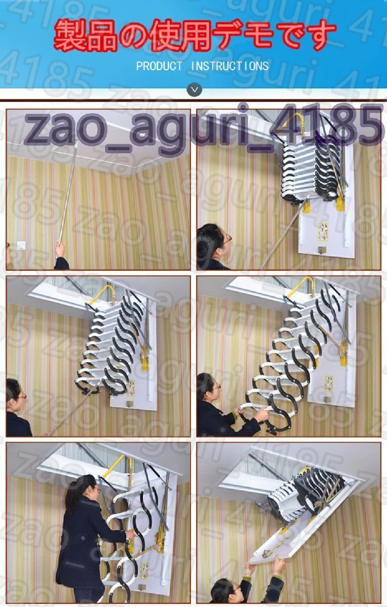 【折り畳み式はしご】折りたたみ式なので、使わないとき、簡単に収納できます。 屋根裏など狭い場所でも使えます。 こちらのはしごは、シンプルで、実用的で、伸縮自在で、小さなところでも使えるのに人気が高まっています。 日常的に使える場所は主にロフト、ガレージ、倉庫、ショップなどで使用されています。 スペースが限られているため、2階と下階をつなぐメインチャネルになります。 | 【高品質材質】ロフト壁はしごは高品質のアルミニウムマグネシウム合金素材でできており、表面は静電スプレー技術を採用しており、品質が安定しており、耐久性に優れ、耐腐食性と耐老化性があります。 一般に市販されている炭素鋼よりも耐久性の高い素材です。 両側はSベンド強化処理を採用しており、より重量、強度、安全性を持っています。 各ジョイントはリベットで接続されています。 厚みのあるリベットを使用することで、はしごの接続がよりしっかりと安全になります。 | 【床保護】折りたたみはしごを設計される際に、安定性は非常に大事なことでした。 はしごは安定性を高め、床に傷をつけないように 、2つのアンチスキッドゴムパッドを使うと考えられます。 滑り止めだけでなく、屋内の床を損傷から守ります。 |
