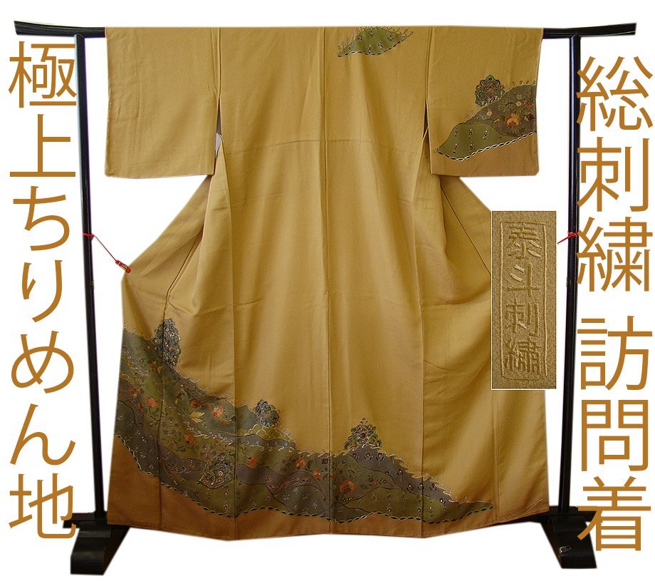 ★美品◆帯や小物次第で様々な表情をお愉しみ頂ける逸品! 極上ちりめん地に総刺繍の重厚感ある豪華な訪問着(正絹) C840★ | |