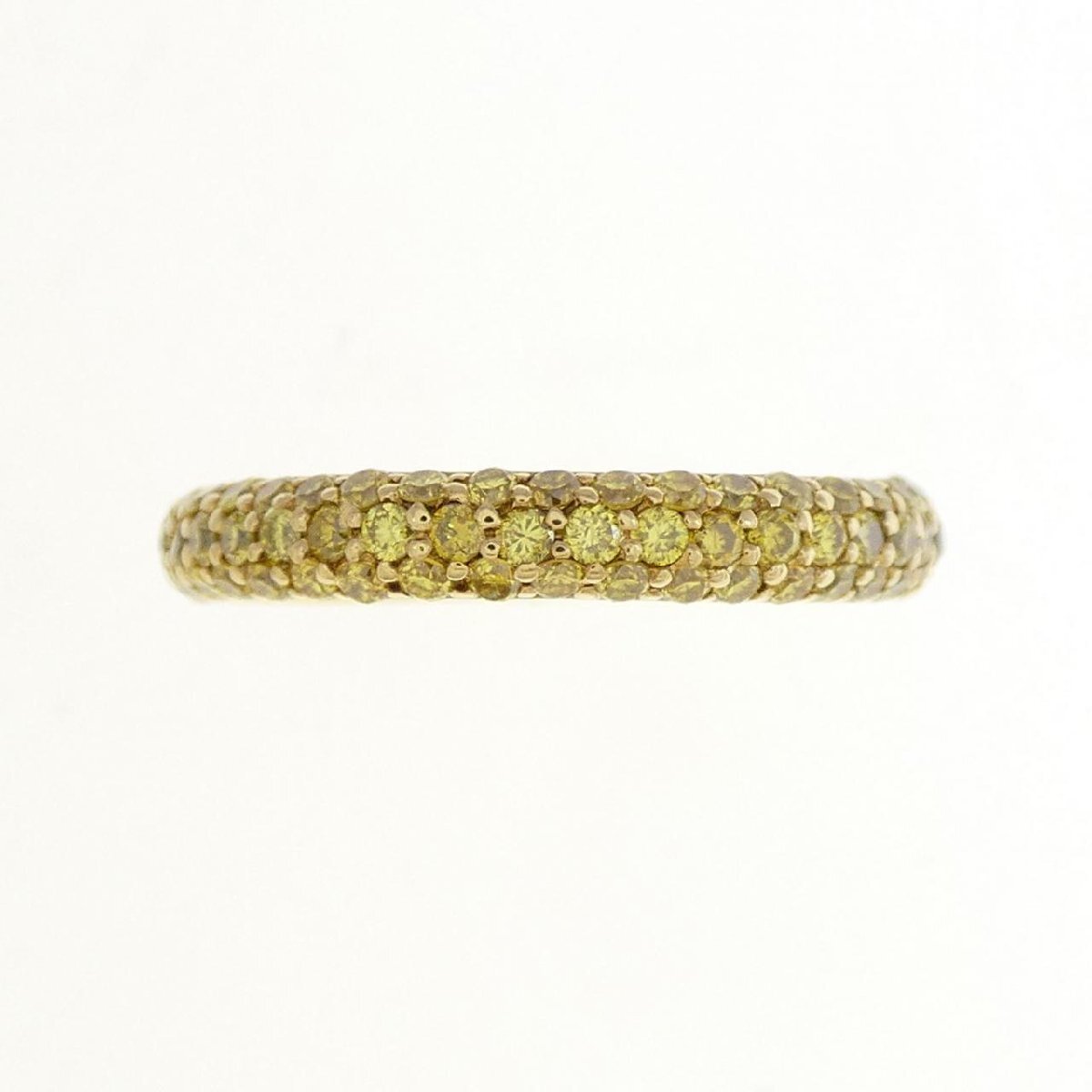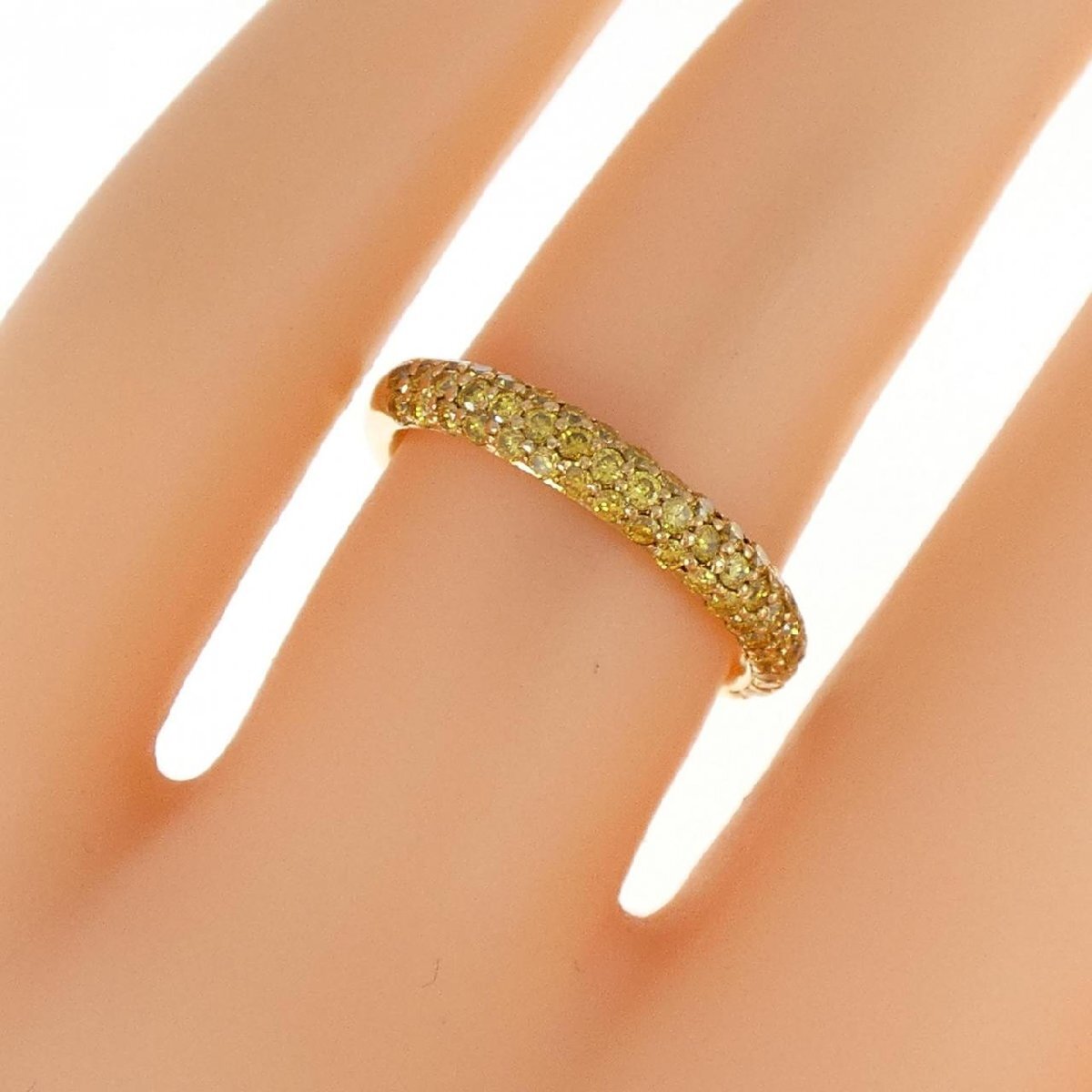 鮮やかなイエローカラーのダイヤモンドがあしらわれたリング。指元をパッと明るく飾ってくれます。