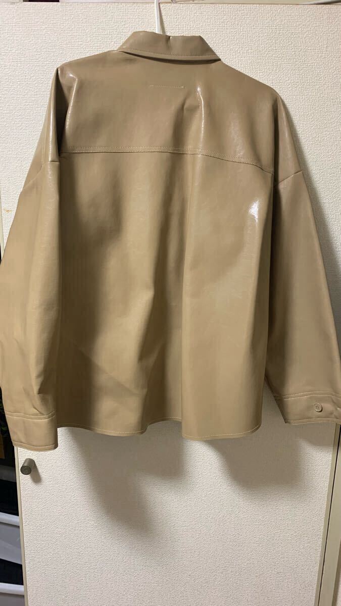 全体をベージュでデザインされた、MM6 Maison Margielaのフェイクレザーシャツになります。光沢感のあるレザーで上品かつカジュアルな大人を演出する商品です。また、シャツ自体軽い為、気軽に着用していただけるシャツジャケットになります。