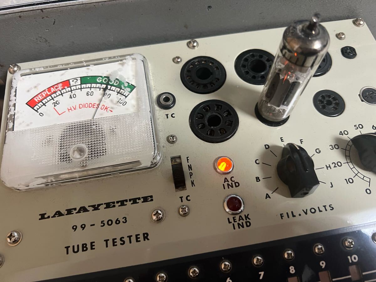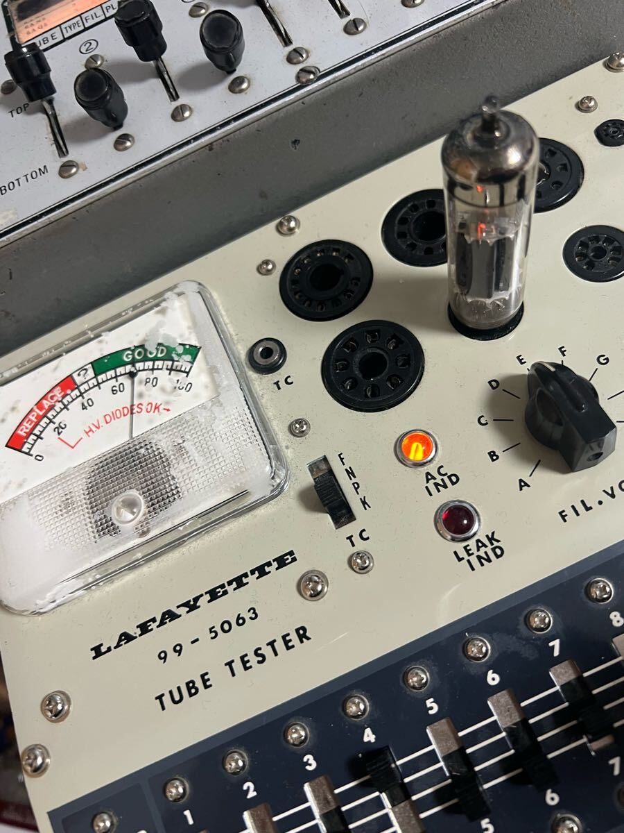 手持ちの真空管試験機(エミッション測定)で全数検査し