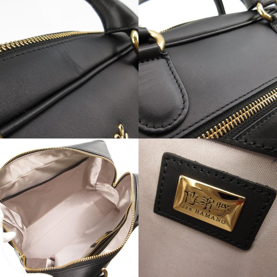 ・送料無料 美品 傳濱野はんどばっぐ でんはまのはんどばっぐ den HAMANO ボストンバッグ ハンドバッグ 鞄 手提げ セレスト Celeste 369-255 レザー 本革 黒 ブラック系 レディース