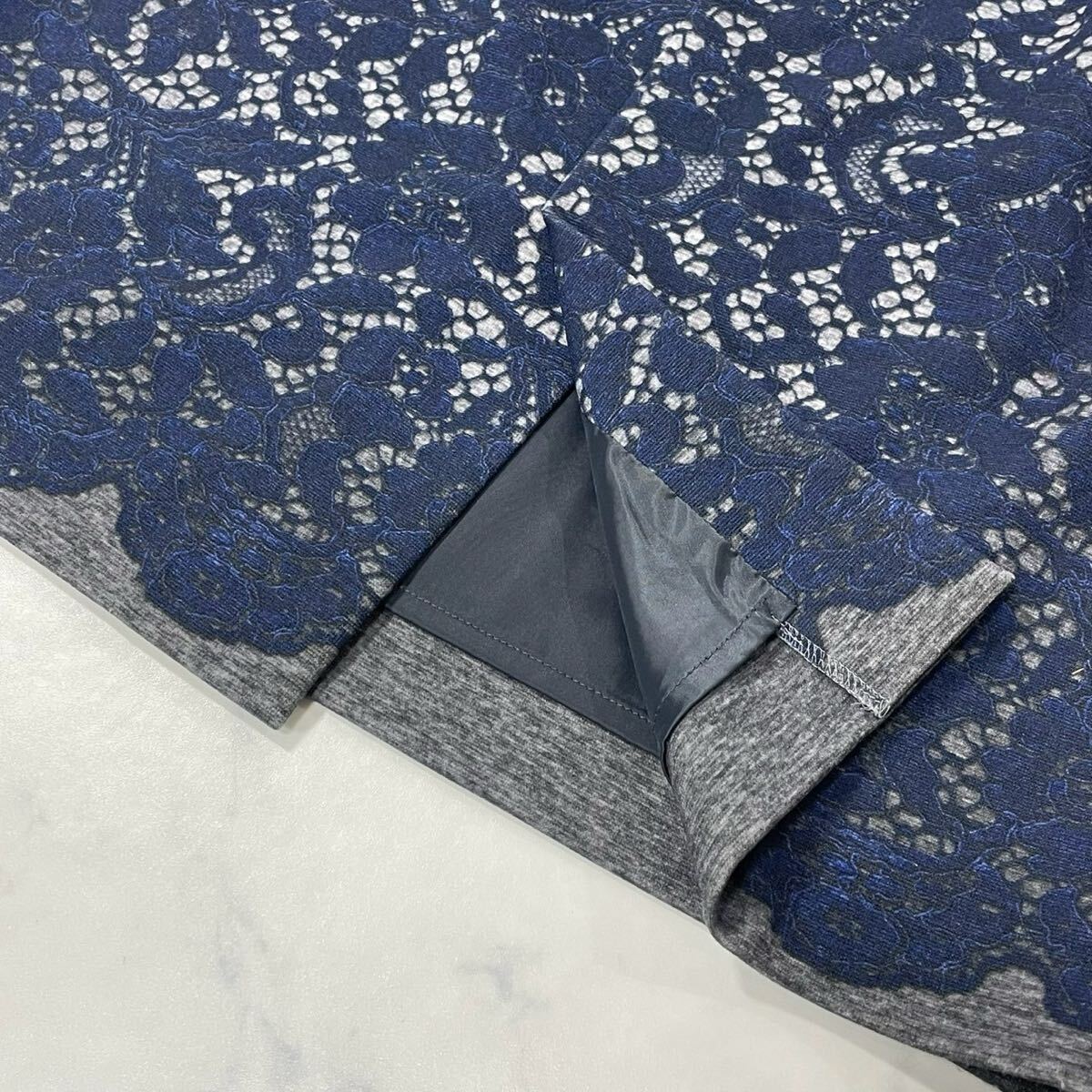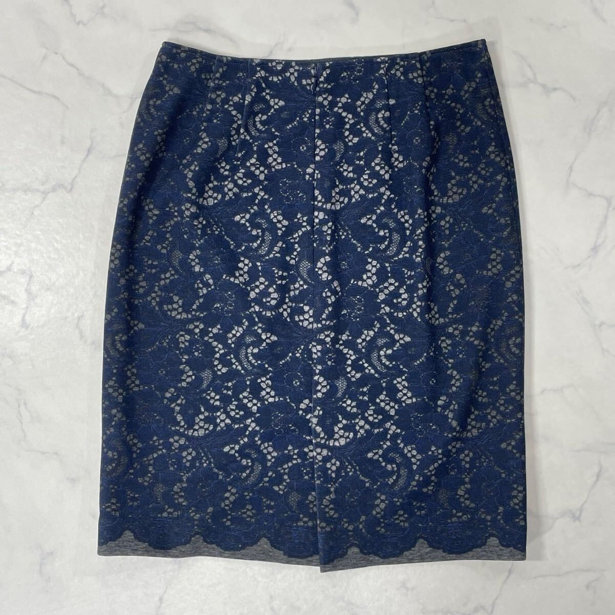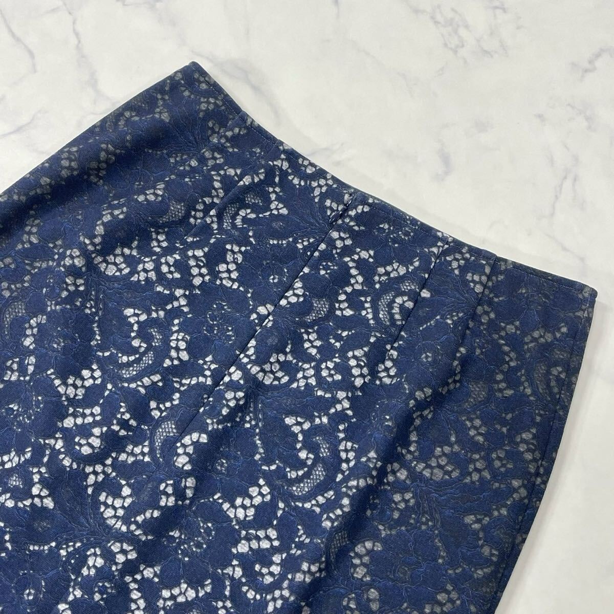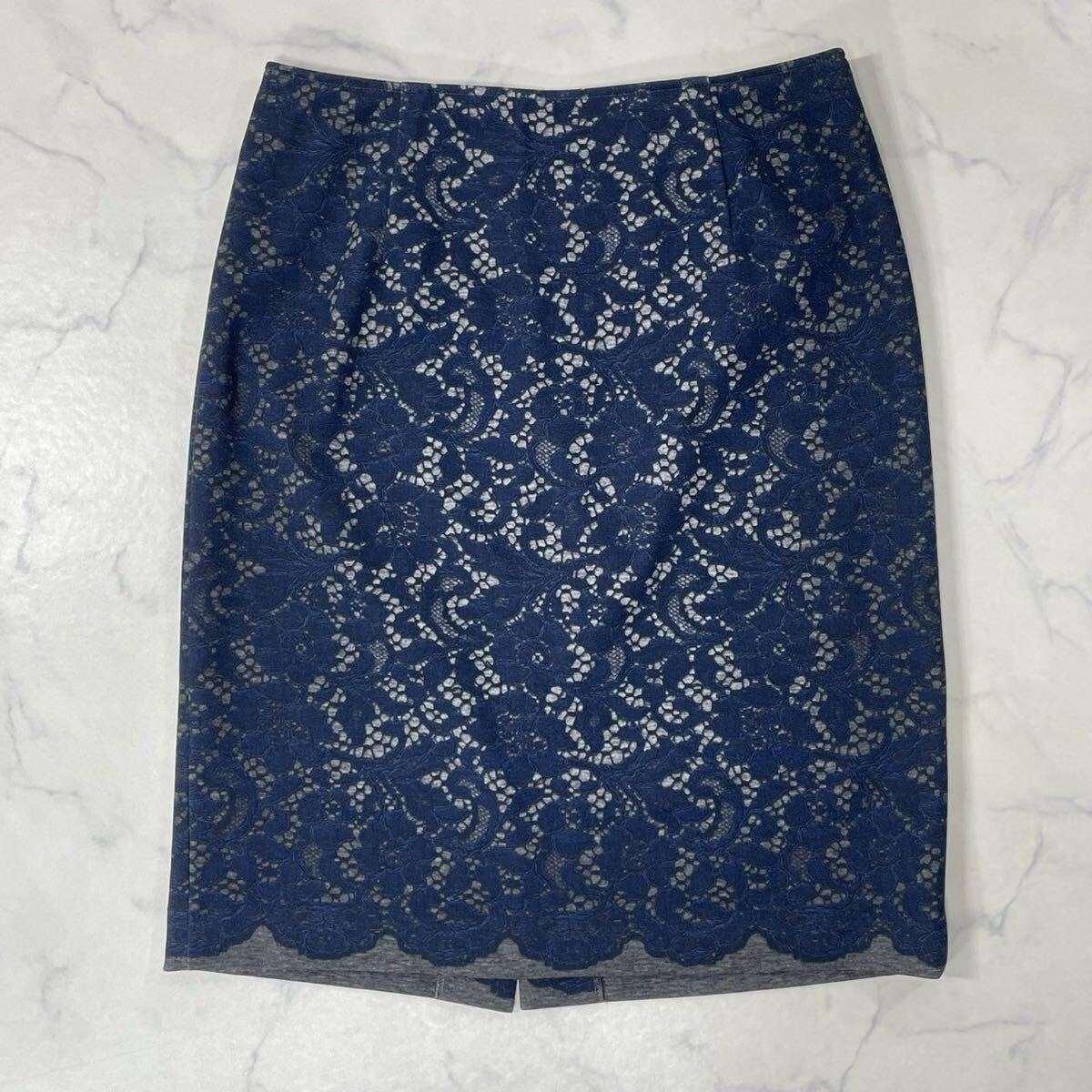 大きめ 花柄 レース柄 裏地付き ダーツ ジップ ベンツ タイト ひざ丈 スカート