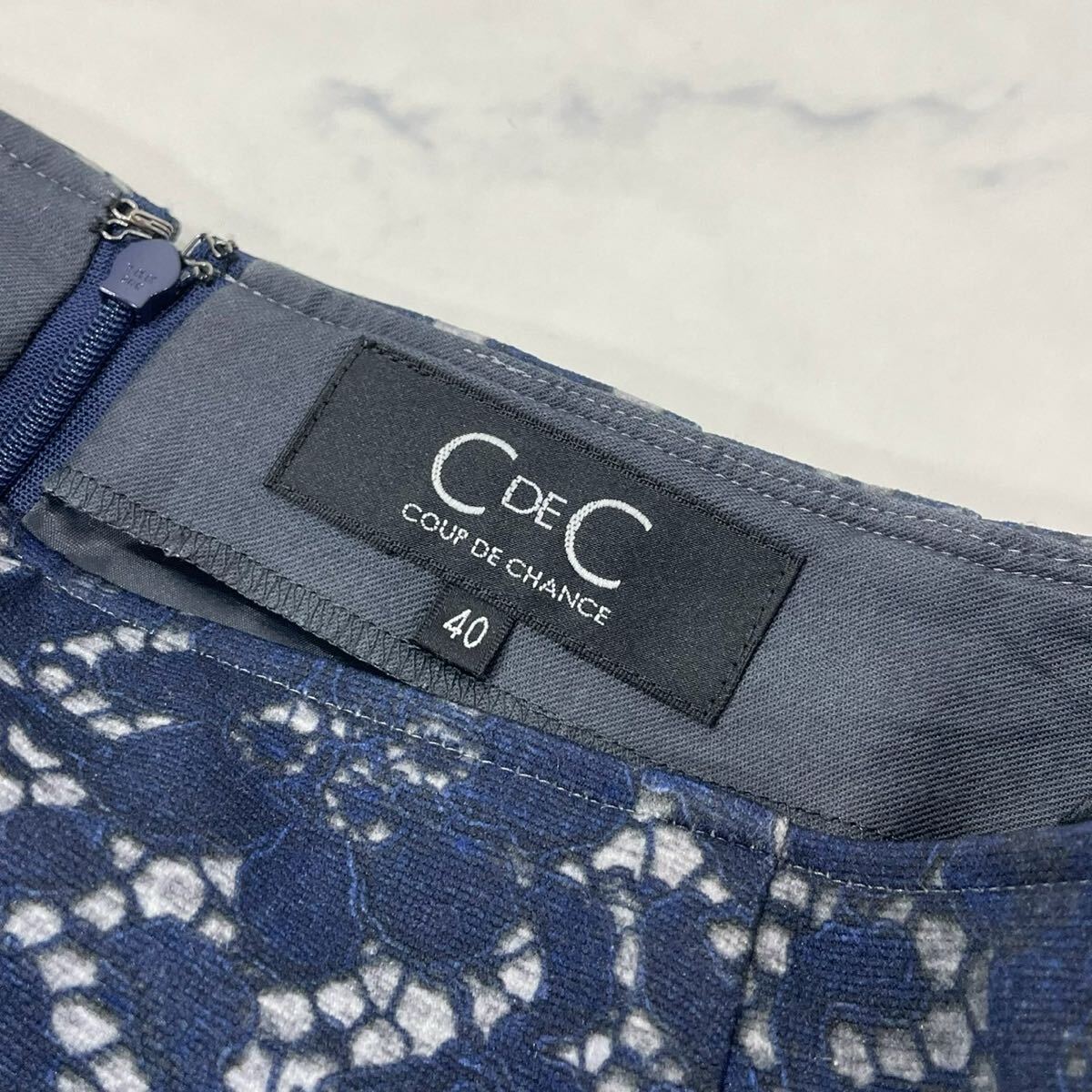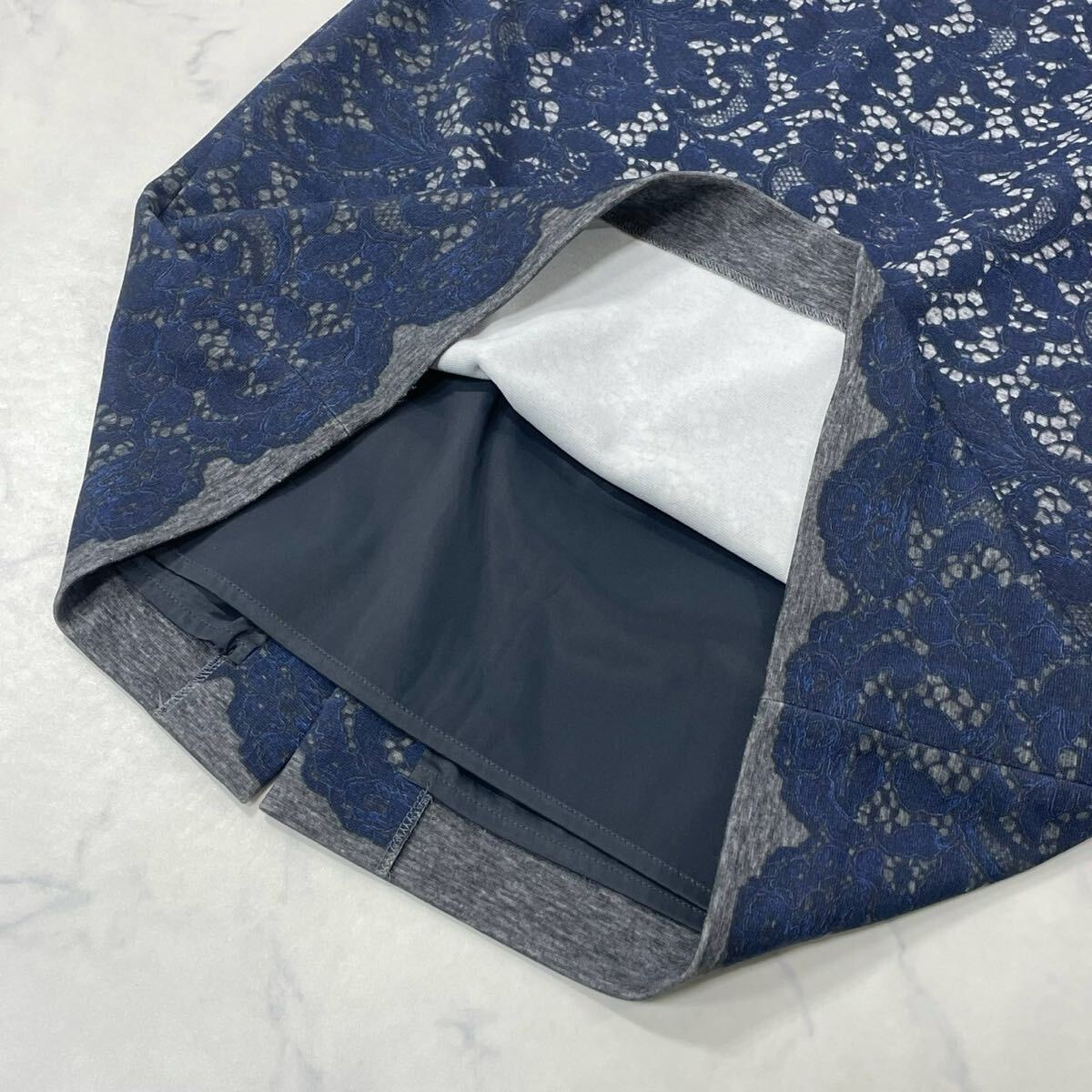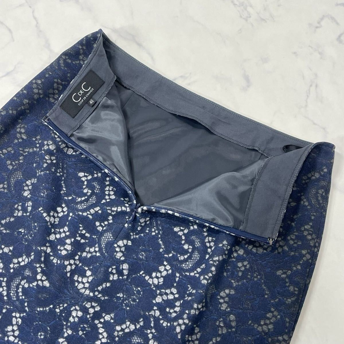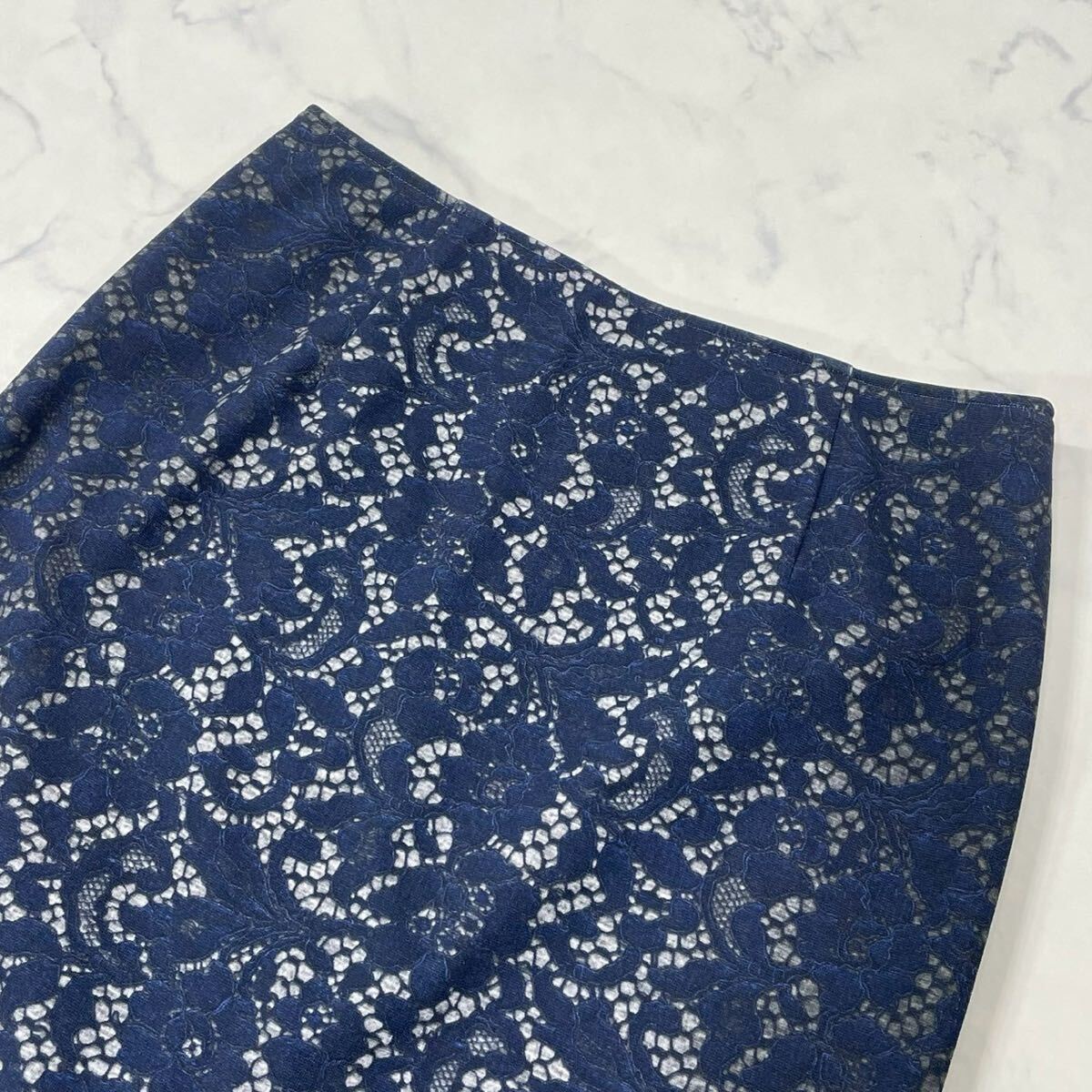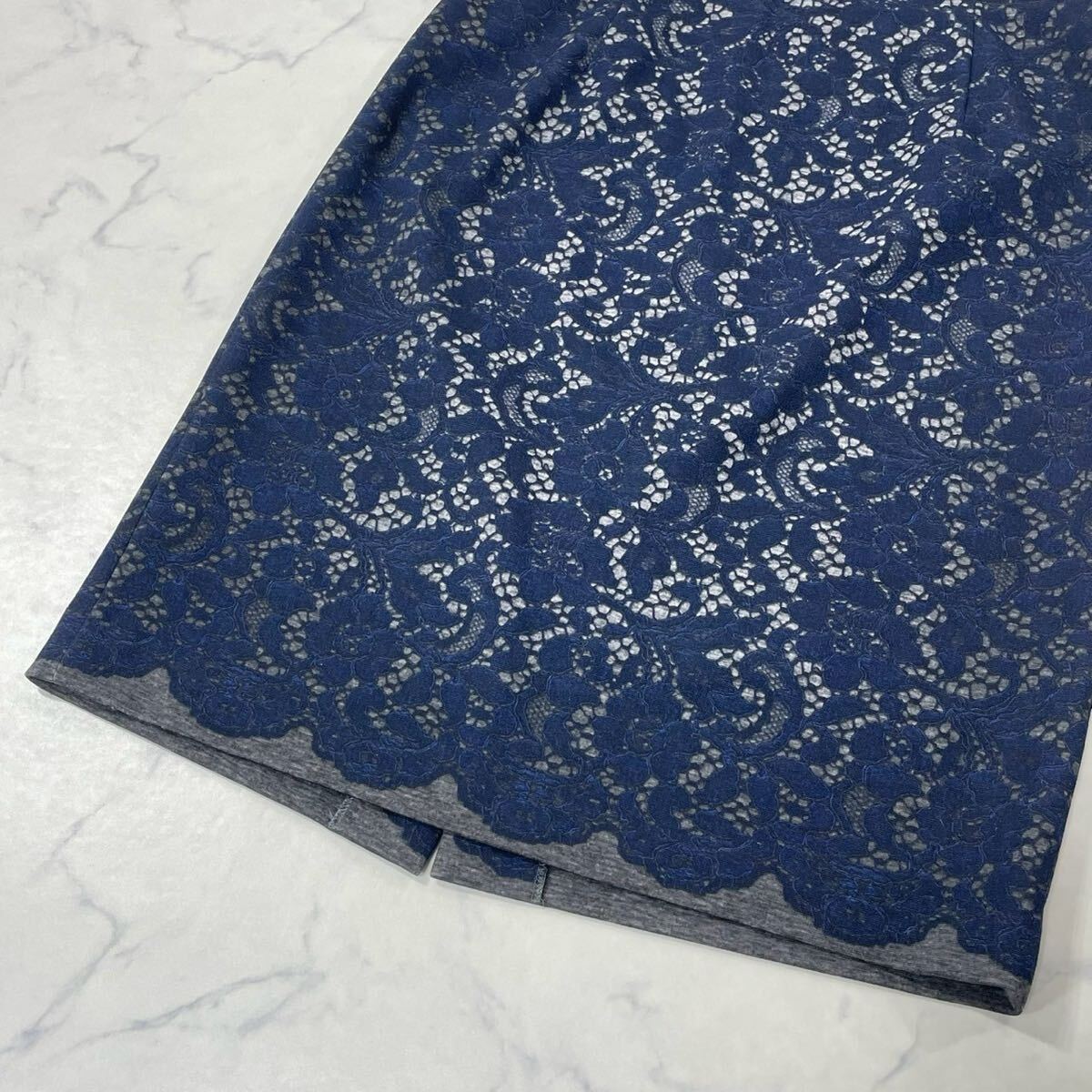大きめ 花柄 レース柄 裏地付き ダーツ ジップ ベンツ タイト ひざ丈 スカート