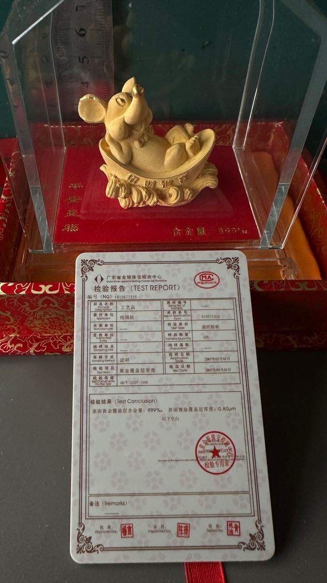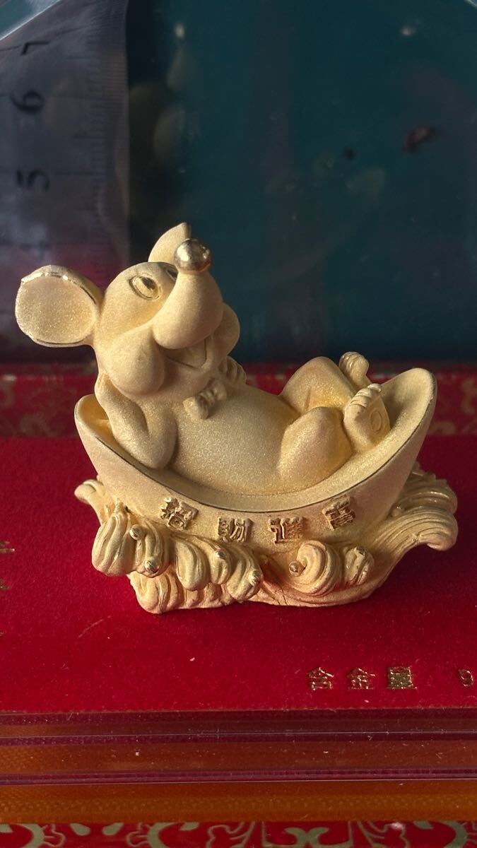中國の十二支・子「ネズミ」・999.9金箔・インテリア
