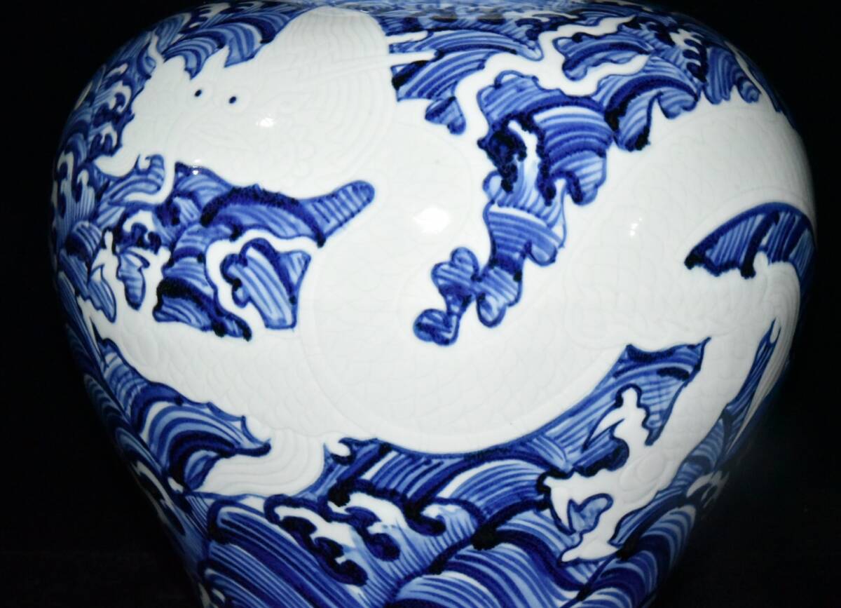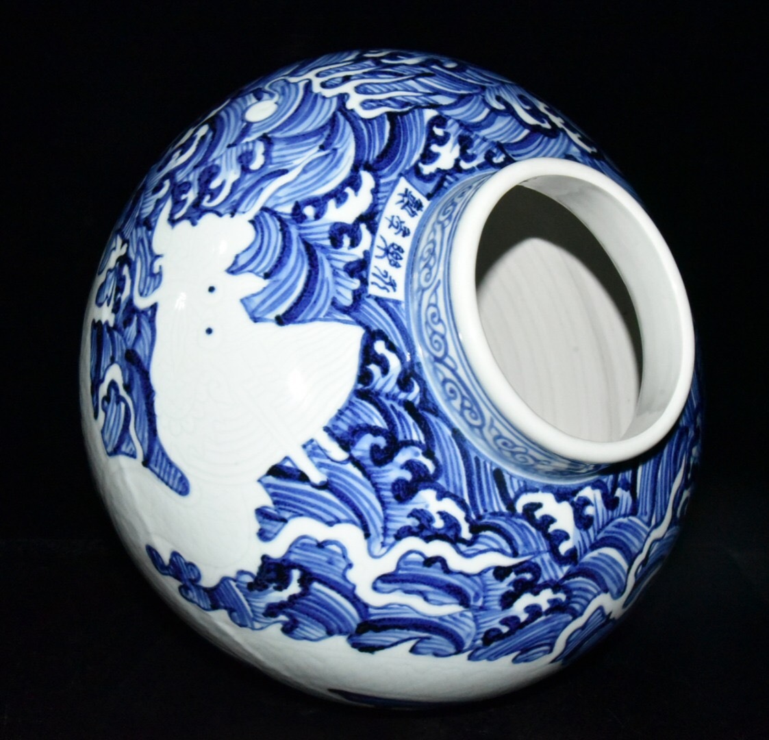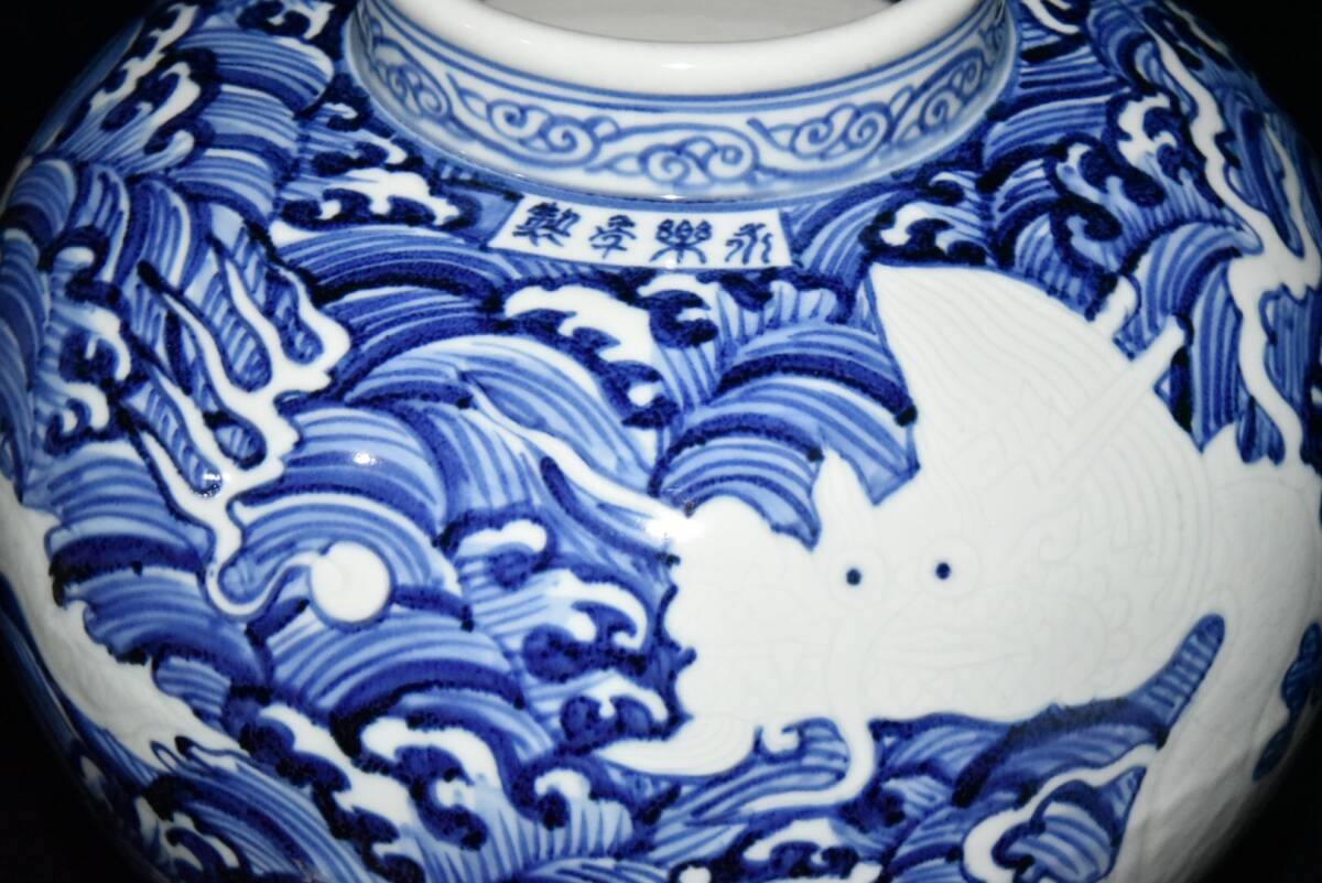 【超珍館蔵】明 永樂年製款 古陶瓷品 青花 海水龍紋罐 置物 古賞物 古美術品 稀少珍蔵品