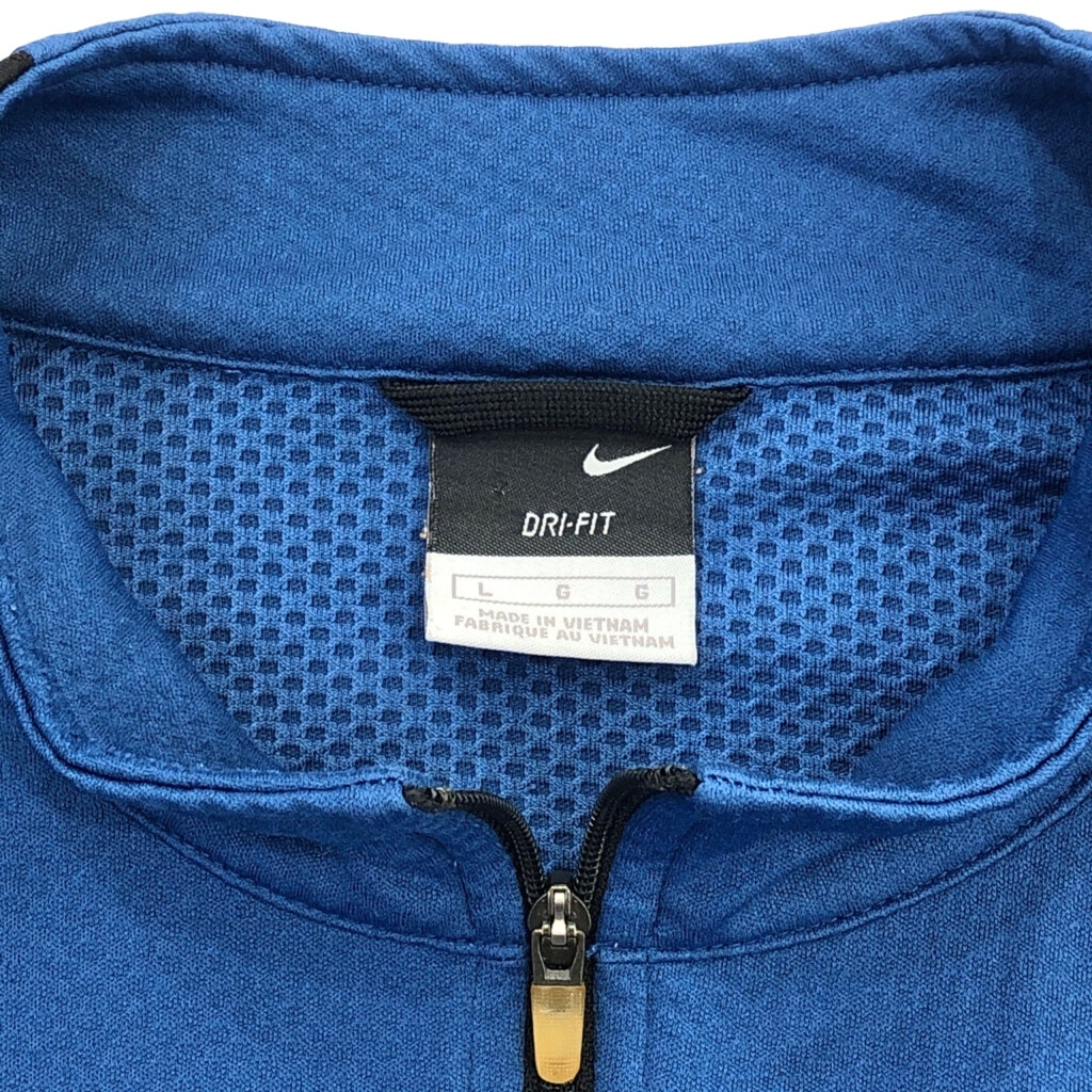 | [商品管理番号] T5385 [ブランド] NIKE/ナイキ [サイズ] L [実寸サイズ] 肩幅:約46cm 着丈:約70cm 身幅:約58cm 袖丈:約62cm [主な素材] 表地 : ポリエステル [色] ブルー [仕様] ハーフジップ 裏地メッシュ スポーツ DRI-FIT ワンポイントロゴ [状態] 汚れ:袖 キズ:袖、背中 | |||