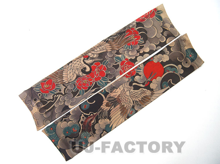 タトゥーアームカバー 和柄 鶴 左右 2枚セット 和風 伸縮素材 タトゥースリーブ 腕カバー 日焼け・UV対策 おしゃれ つる