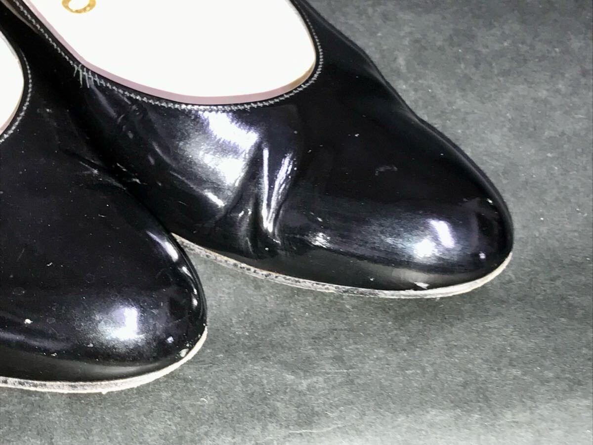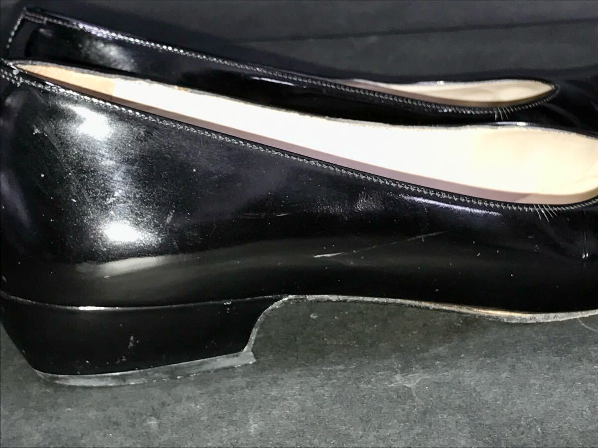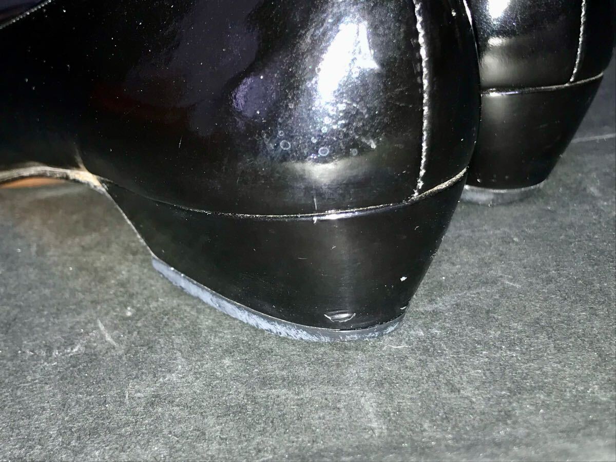 左のヒール後ろとつま先にキズが、右の外側サイドに小さなキズがございます。ご承知置きいただき、神経質な方のご入札はご遠慮くださいませ。箱付き。