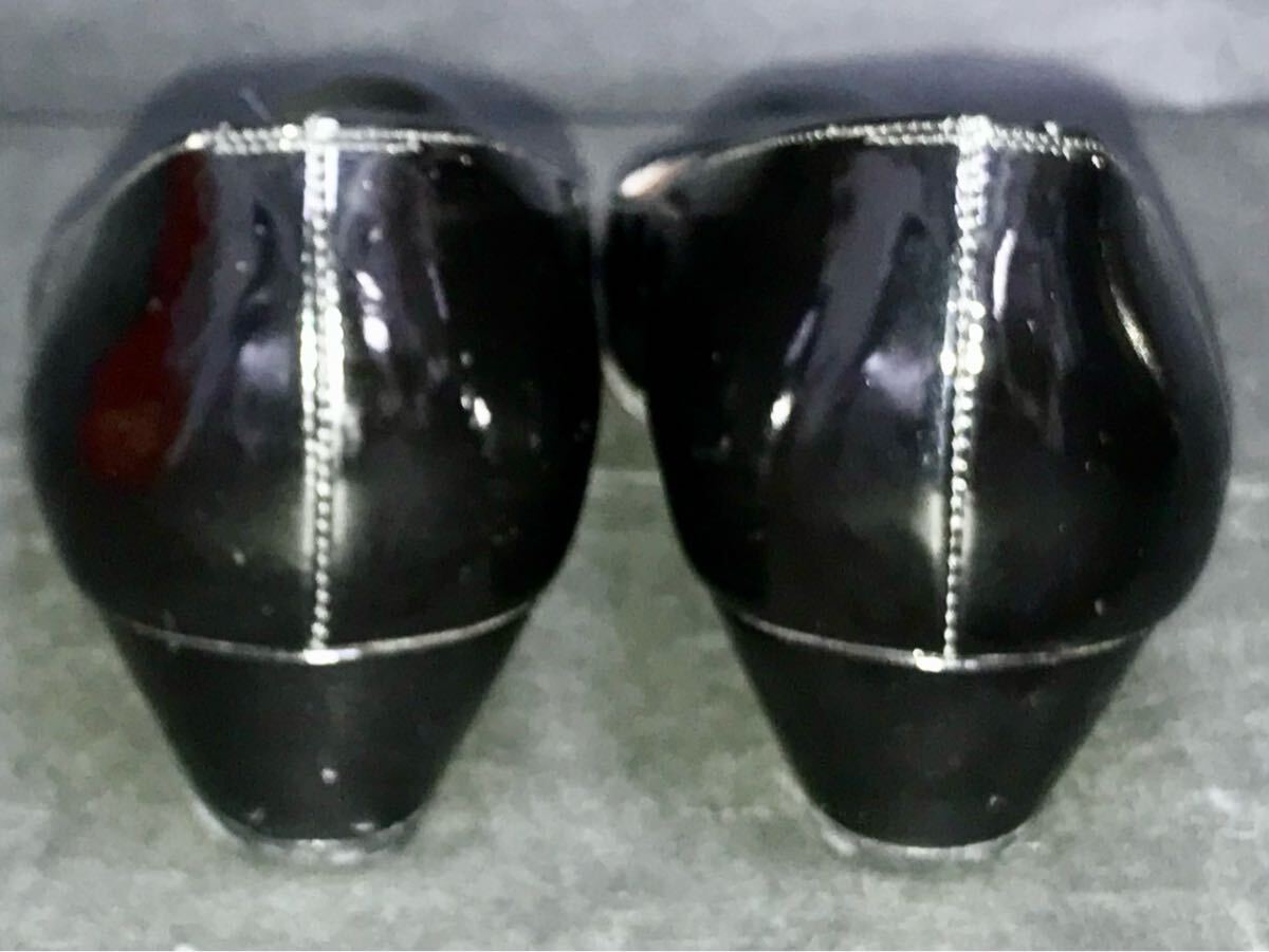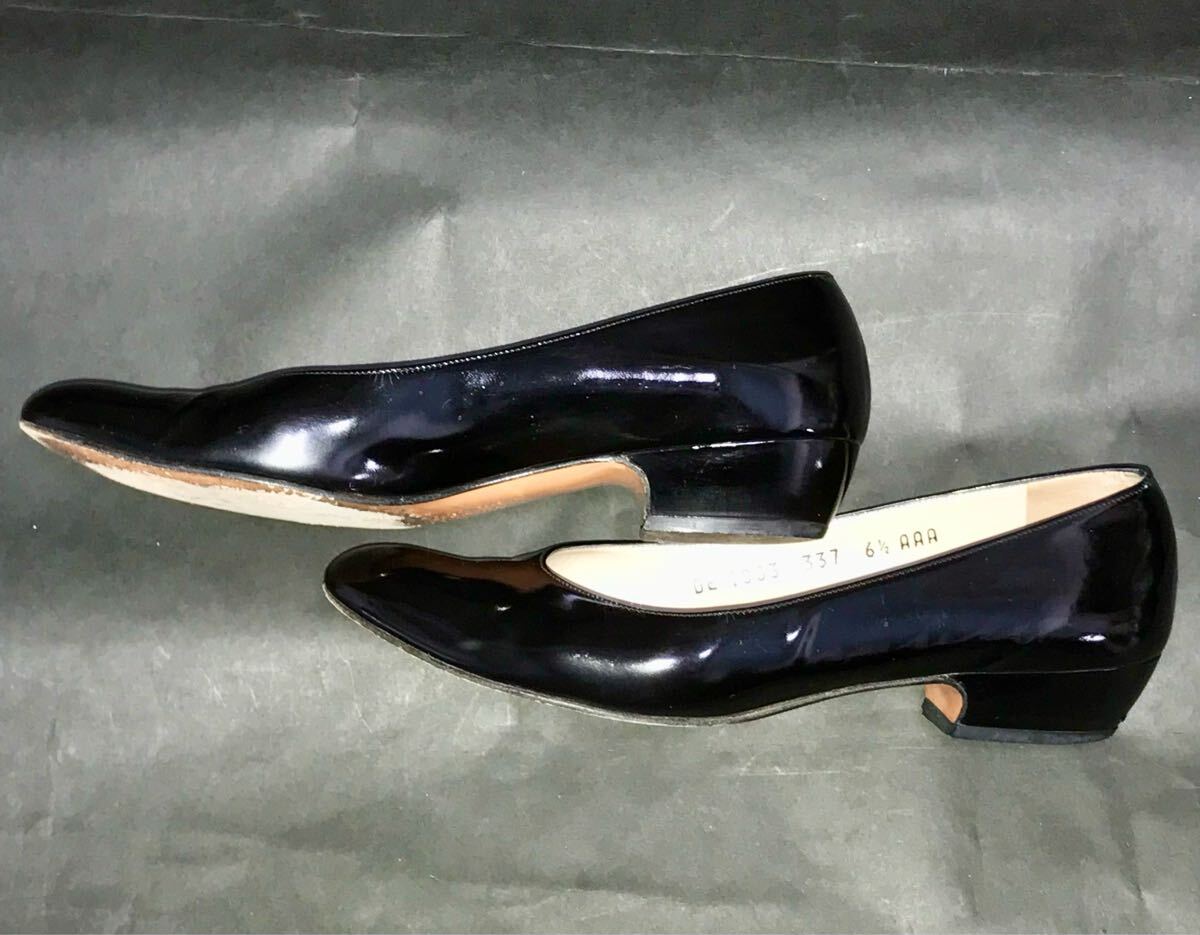 フェラガモ★Ferragamo★エナメルローヒールシューズ フラットシューズ 6 1/2 AAA ブラック