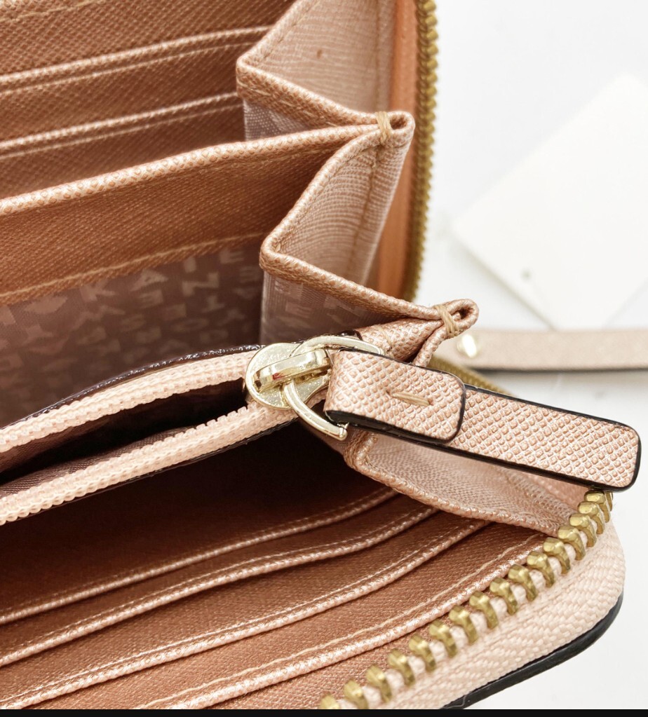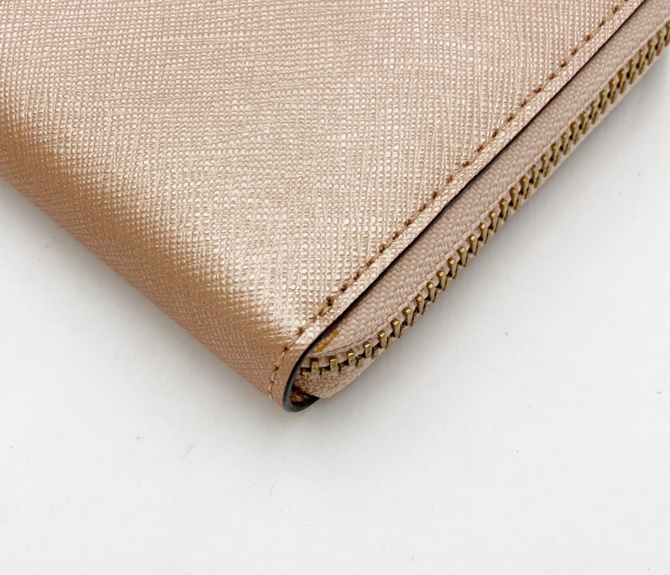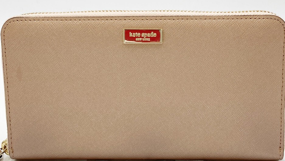 Kate spade NEW YORKケートスペードラウンドファスナー長財布 レザー シャンパンゴールド 美品