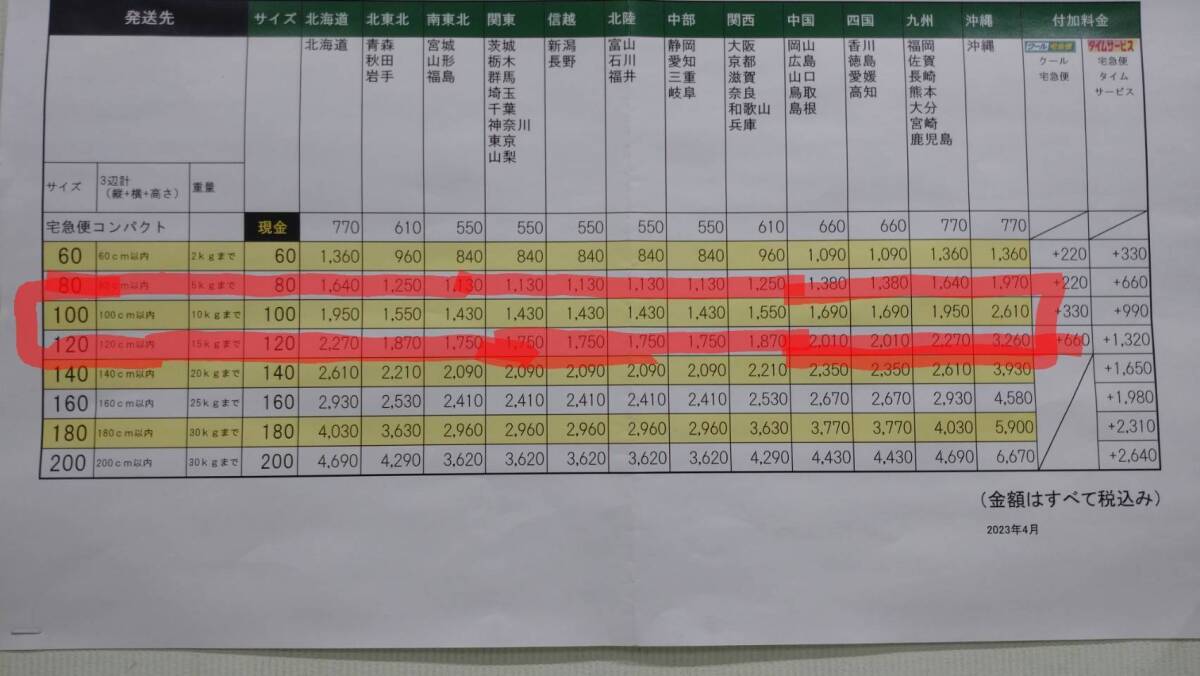 ヤマト運輸 100サイズ
