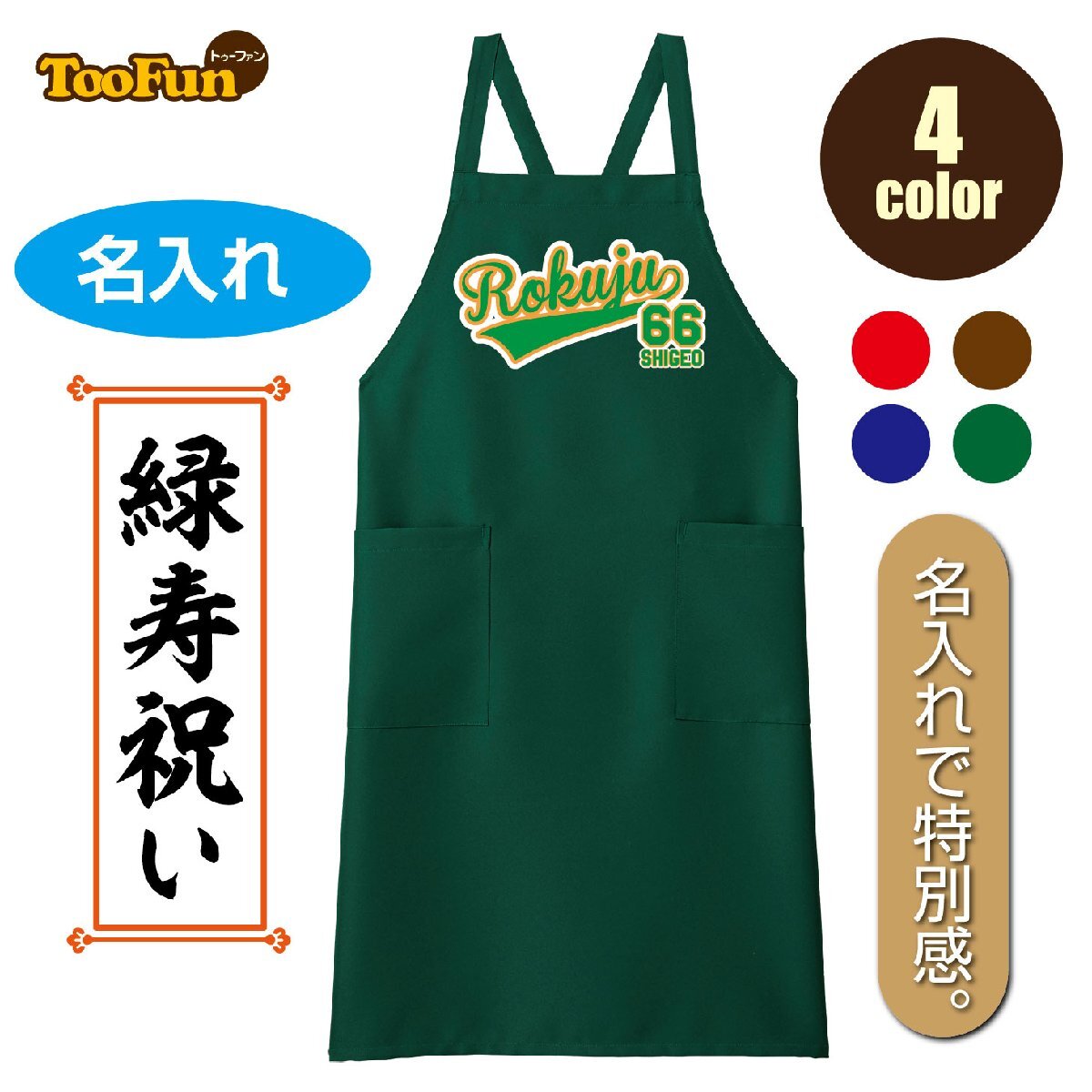 緑寿66歳を祝う特別なエプロンは、名入れが可能で、贈り物として最適です。野球好きの方にぴったりのデザインで、ユニフォーム風のスタイルが特徴です。メンズ・レディース問わず、オールシーズンで使用できるこのエプロンは、お料理やガーデニング、普段使いにも適しています。涼しくカジュアルな4色展開で、特別な日をさらに彩ります。数字や文字を自由に入れられるので、心のこもったプレゼントとして喜ばれることでしょう。緑寿のお祝いや記念日のお祝いとして名入れができるエプロン[4色]です。