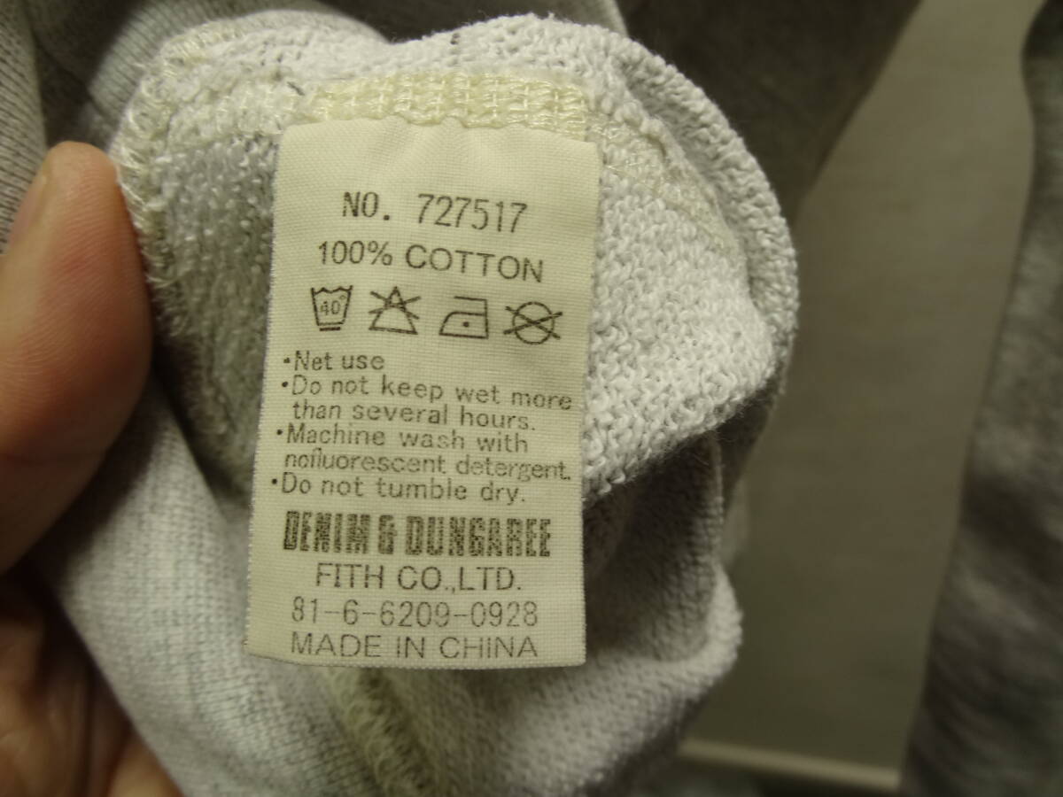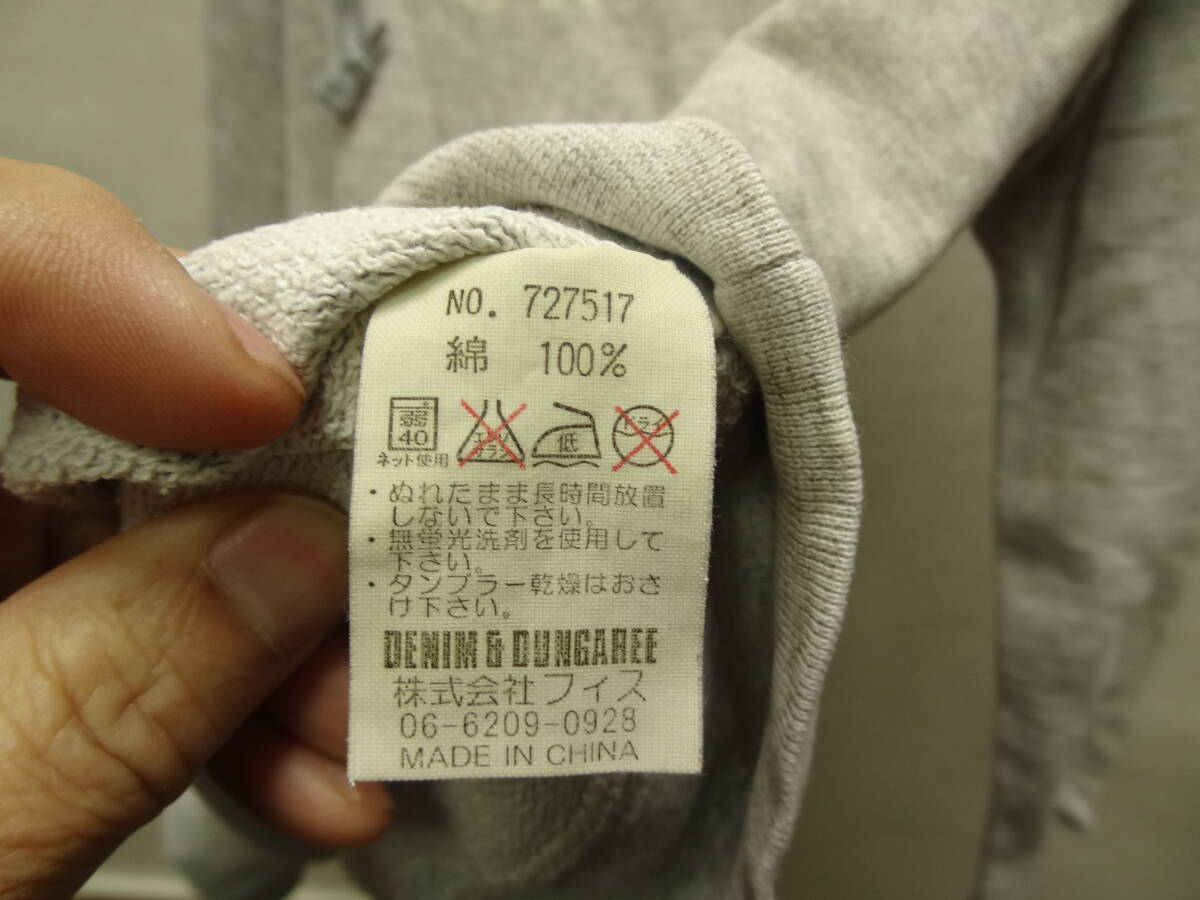 送料無料 デニム&ダンガリー DENIM&DUNGAREE フィス キッズ&レディース ひび割れクラックプリント 杢グレー色スウェットプルパーカー150