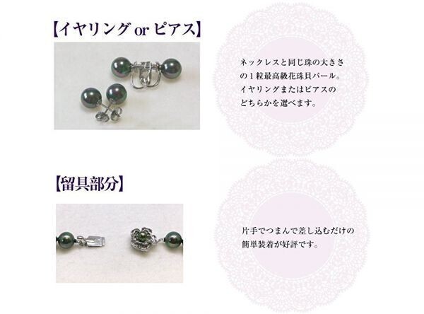 • 国産花珠黒貝パール 約9.0mmアップ(ネック・イヤリング/ピアス共)ブラックシリコン入り