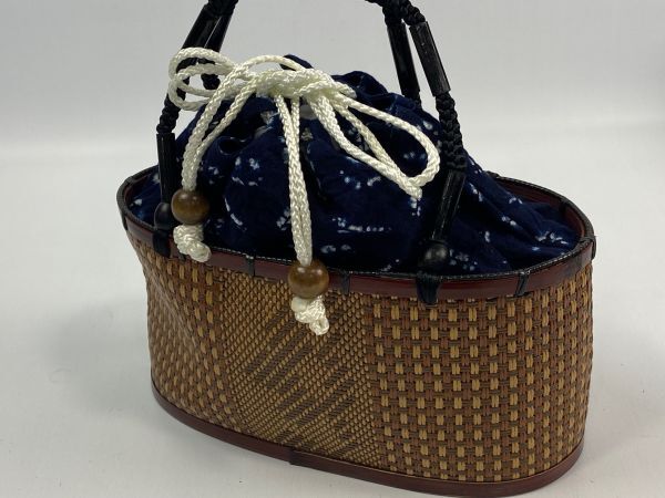 <色>巾着部分 藍色 絞り  かご部分 茶色