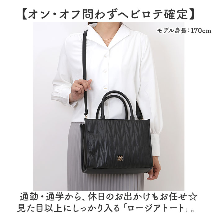 商品説明 | ・・【オン・オフ問わずヘビロテ確定】 ・通勤・通学から、休日のお出かけもお任せ☆見た目以上にしっかり入る「ロージアトート」。 ・【レディライクなシンプルデザイン】 ・ソフトなキルト生地で、上品に仕上げたアイテム。ワンカラーに、ゴールドプレートロゴをON。 ・【お好みに合わせてスタイルチェンジ】 ・手持ちのトート♪長さ調節可能なショルダーを取り付け、肩掛けや斜め掛けもできる2way。 ・【開閉スムーズ、安心の天ファスナー】 ・ガバっと開いて取り出しやすく、ファスナーを閉じれば中身の飛び出しをガード。 ・【B5対応ですっきりひとまとめ】 ・B5が横向きに、500mlペットボトルも収納可能。ポーチなどマストアイテムがこれ1つに。 ・(※)500mlペットボトルは縦向きに入れた場合、上部が少しはみ出します。 ・【サクッと取り出せて迷子知らず】 ・内側に3つのポケットを配置。細々した物も、バッグの中で探す手間が不要。 ・【キレイなフォルムも安定性もキープ】 ・底面は程よい硬さがあり、型崩れしにくいスクエア形状。荷物を入れていない状態でも自立。 ・【コーデに馴染むベーシックカラー】 ・落ち着きのあるカラーで、大人可愛く♪コーデに合わせやすく、飽きのこないデザイン。 ・【ポケット仕様】 ・内側:ファスナーポケット×1、オープンポケット×2 |