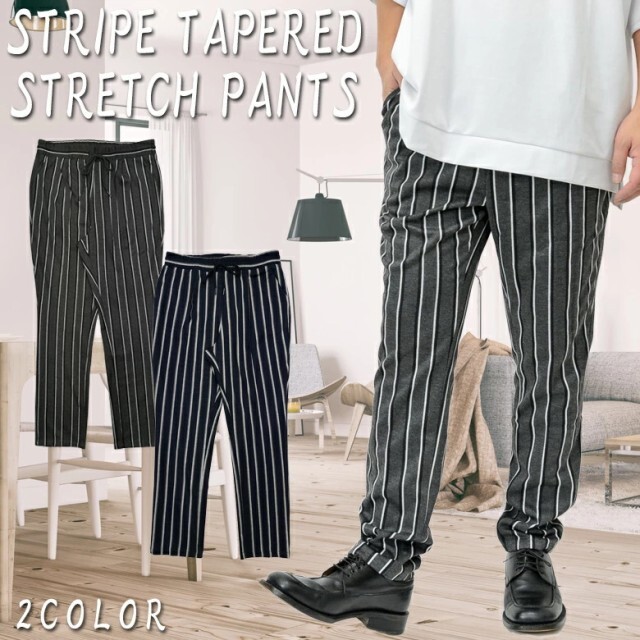 ストレッチストライプ テーパードパンツrv7504 テーパードパンツ ポンチ素材 ストレッチ  新品 グレー M