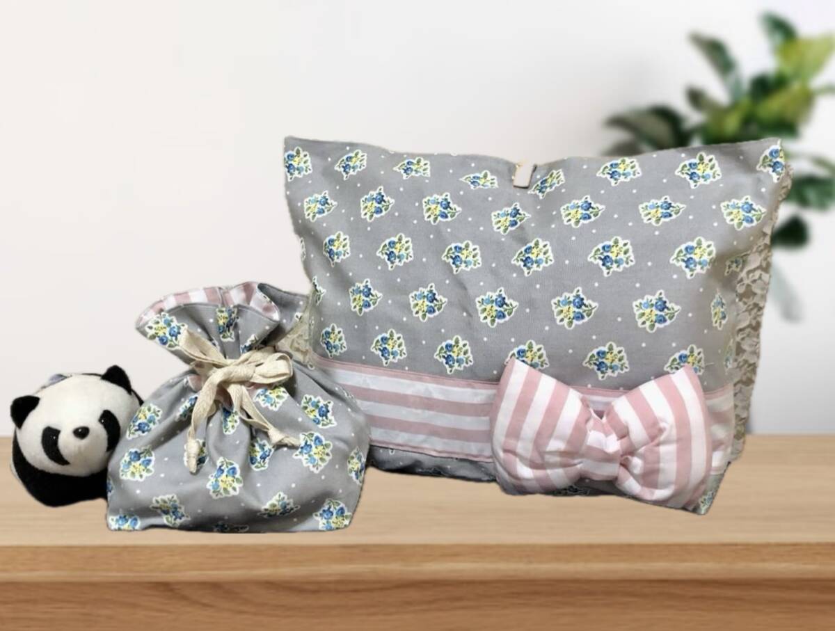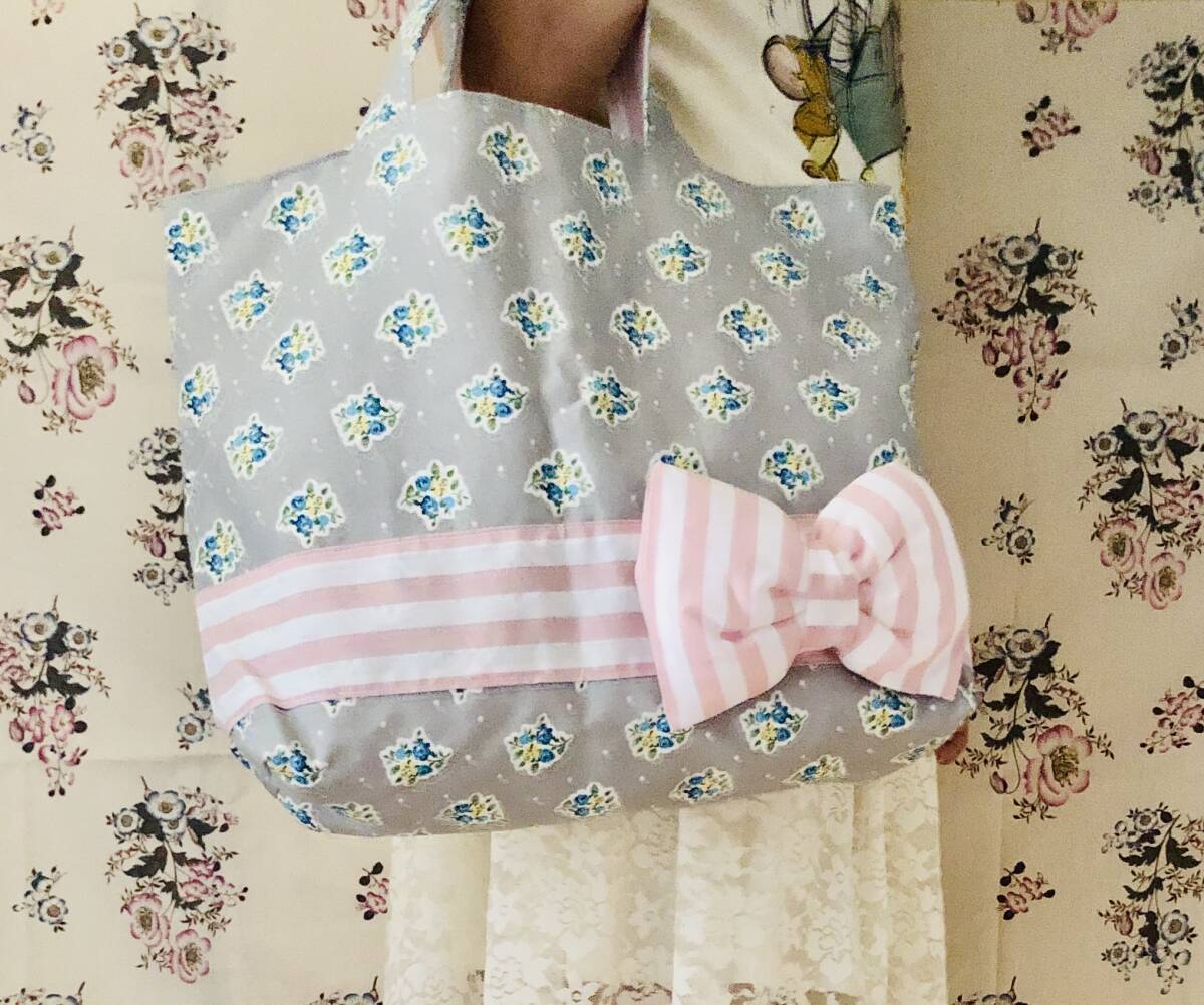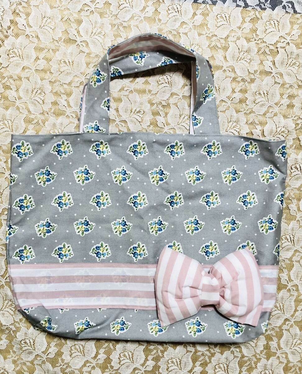 ☆ハンドメイドバッグ 花柄リボン付きトートバッグと巾着セットのセットです。