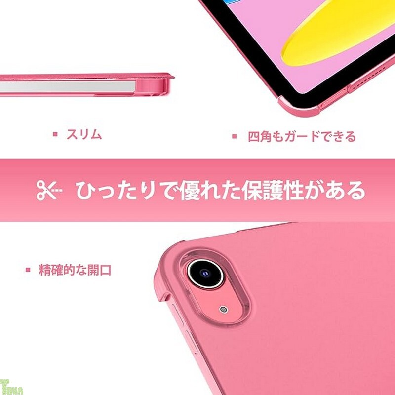 ピンク 三つ折り 半透明 マット背面 オートスリープ / ウェイク アイパッド 2025モデル 第11 / 10 世代 iPad 11 ケース カバー