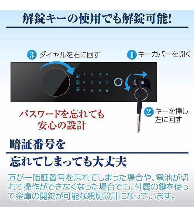 普段は鍵の携帯不要で、金庫の開錠は指紋認証かテンキーで